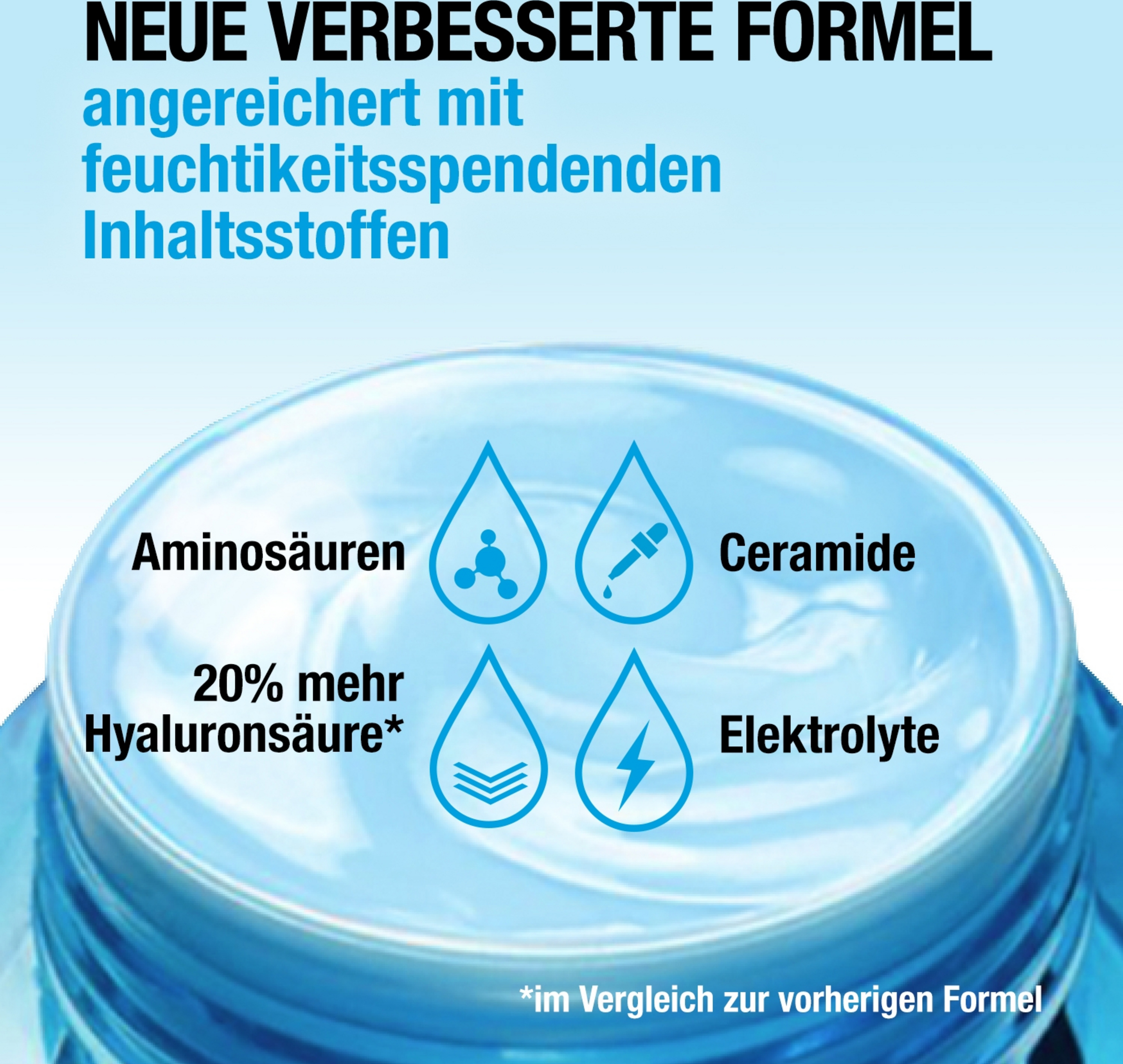 - mit Hyaluronsäure, Aminosäuren, Elektrolyten und Peptiden