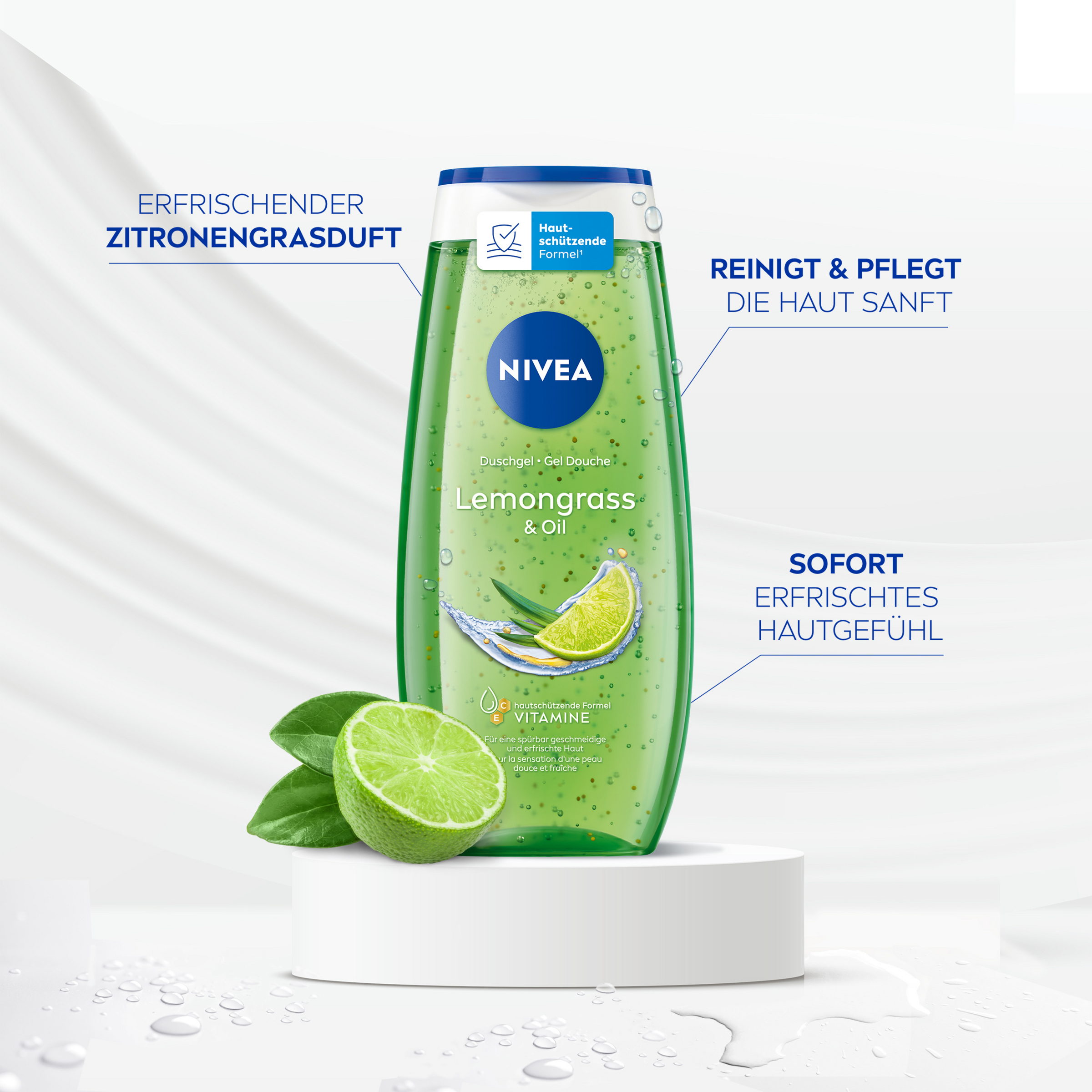 Erlebe ein geschmeidiges Hautgefühl mit dem NIVEA Lemongrass & Oil Duschgel. Spüre, wie das erfrischende Duschgel mit Pflegeöl-Perlen und Vitamin C & E deine Haut sanft unter der Dusche reinigt und pflegt. Genieße den samtweichen Schaum und den revitalisierenden Zitronengras-Duft.