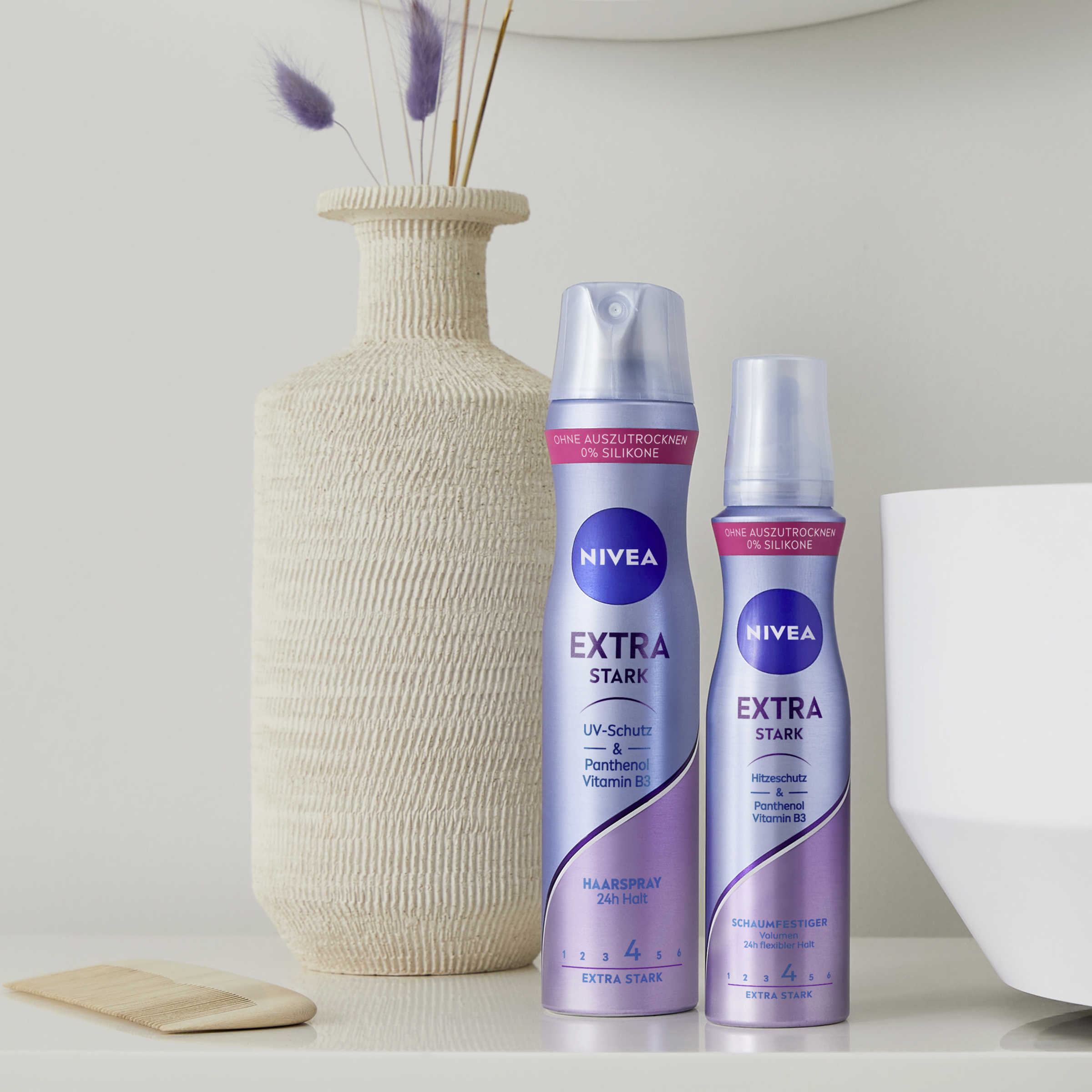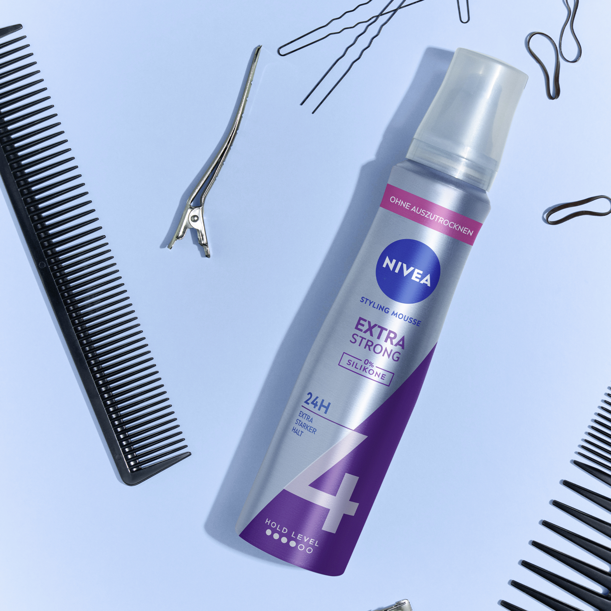 Effektives Styling für schönes Haar mit dem NIVEA Extra Strong Styling Mousse. In Kombination mit dem Styling Spray bieten die beiden NIVEA Produkte mit Hold Level 4 einen extra starken Halt unterschiedlicher Haarstyles. Ideal für anspruchsvolle Looks, die den ganzen Tag halten sollen – ohne Kompromisse.