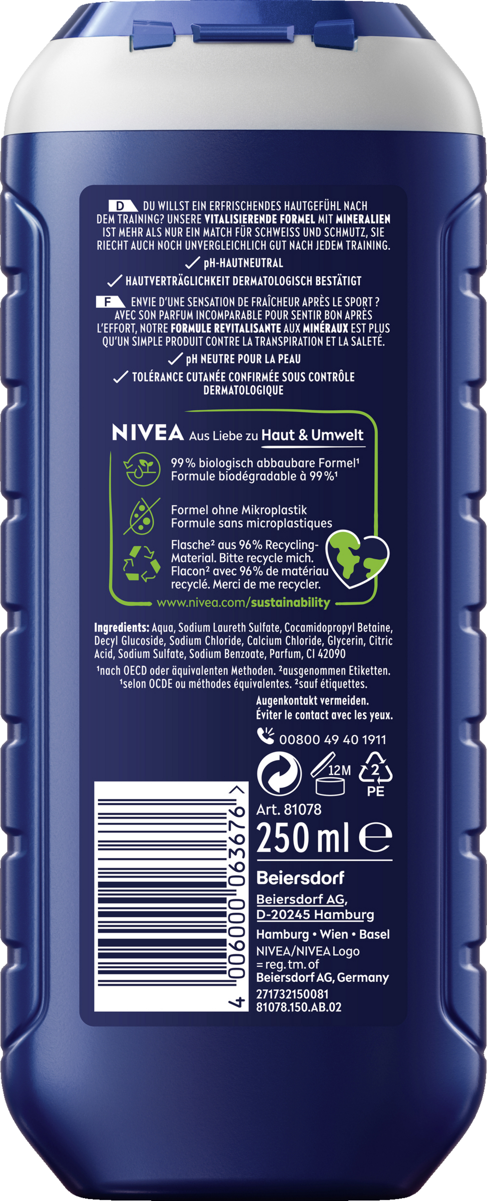 Du willst ein erfrischendes Hautgefühl nach dem Training? Das NIVEA Men Sport Duschgel wirkt vitalisierend auf die Haut. Die Formel mit Mineralien ist mehr als nur ein Match für Schweiß und Schmutz. Sie riecht auch noch unvergleichlich gut nach jedem Training. Mit 24h Frische-Effekt.
