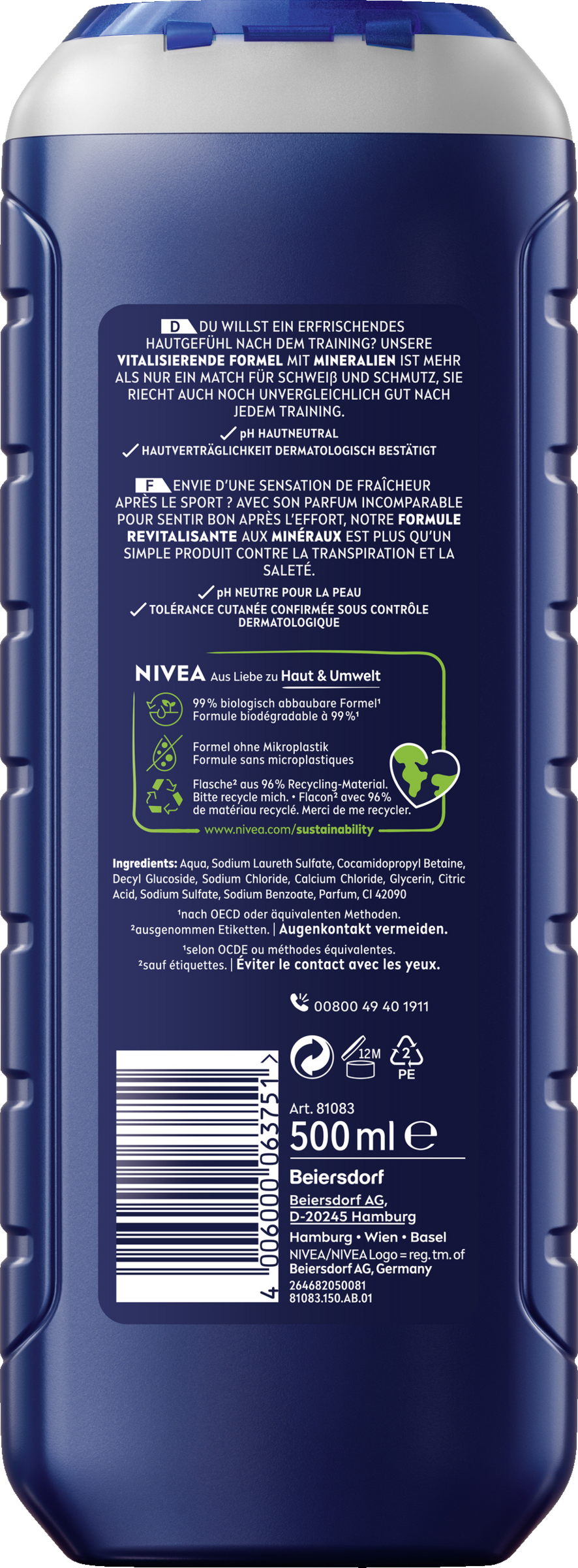 Du willst ein erfrischendes Hautgefühl nach dem Training? Das NIVEA Men Sport Duschgel wirkt vitalisierend auf die Haut. Die Formel mit Mineralien ist mehr als nur ein Match für Schweiß und Schmutz. Sie riecht auch noch unvergleichlich gut nach jedem Training. Mit 24h Frische-Effekt.