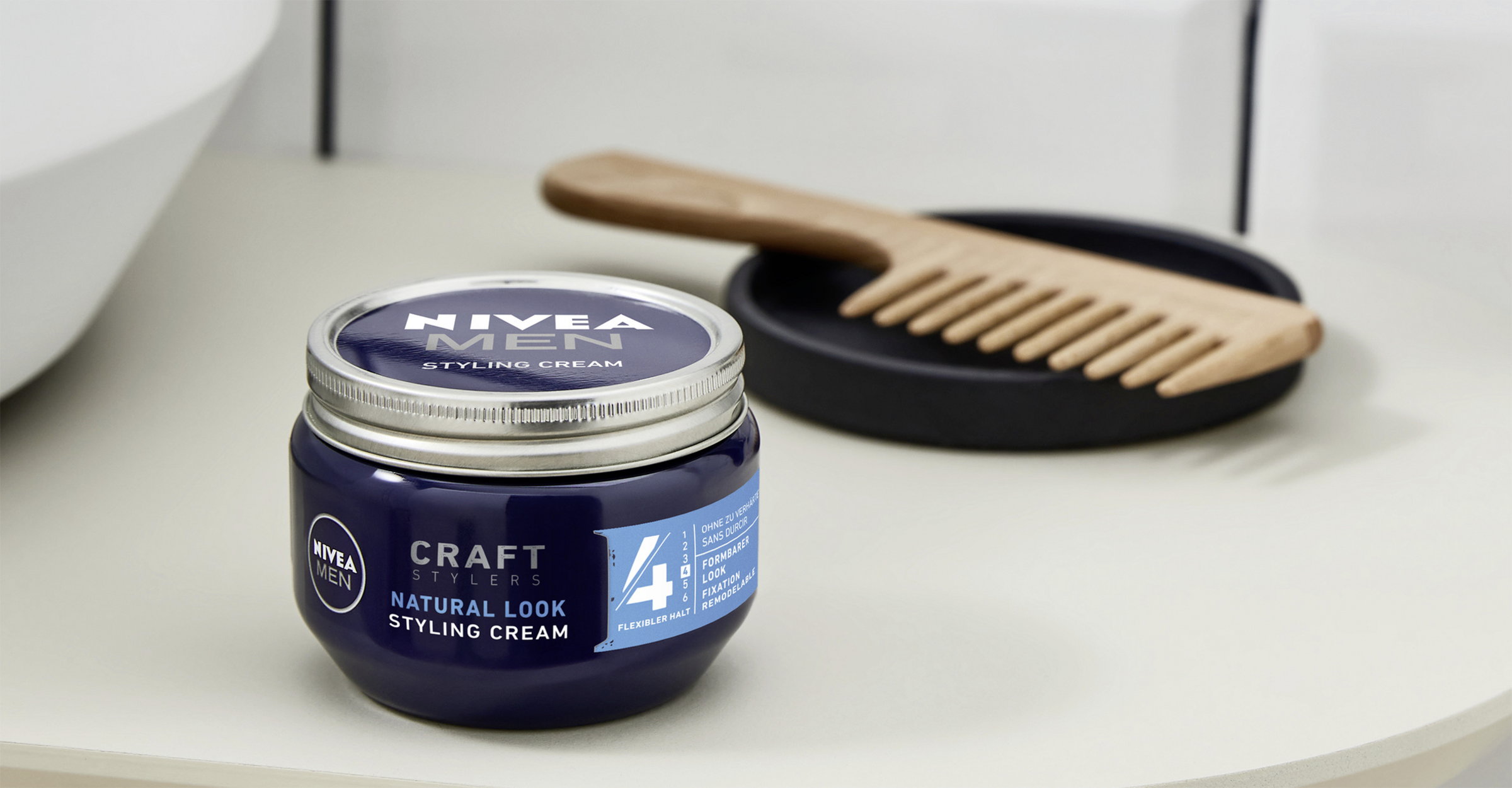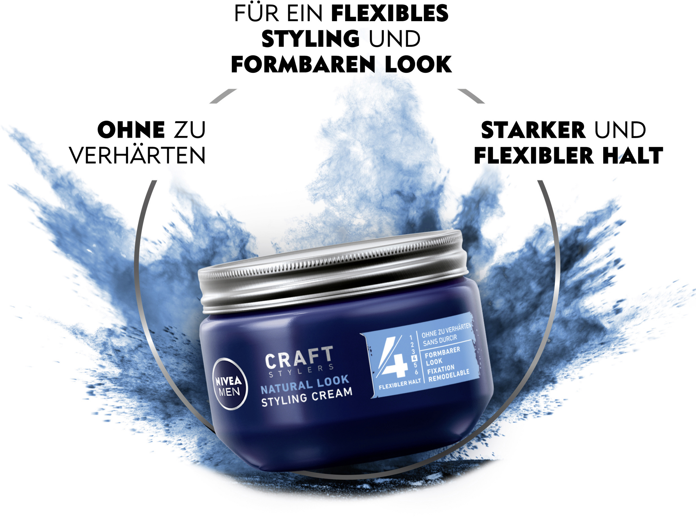 Dank der Formulierung von Polymeren in einer Emulsion sorgt die Styling Cream für ein sehr flexibles Styling und gleichzeitig starken Halt. Die Formel mit Polymeren und Vitaminen wie Panthenol und Vitamin B3 schenkt dem Haar Flexibilität - für einen formbaren Look. Aber das Beste ist, dass die Styling Cream das Haar nicht verhärtet und sich so problemlos auswaschen lässt. Die NIVEA MEN Styling Cream sorgt für formbaren Halt und gepflegtes Haar.