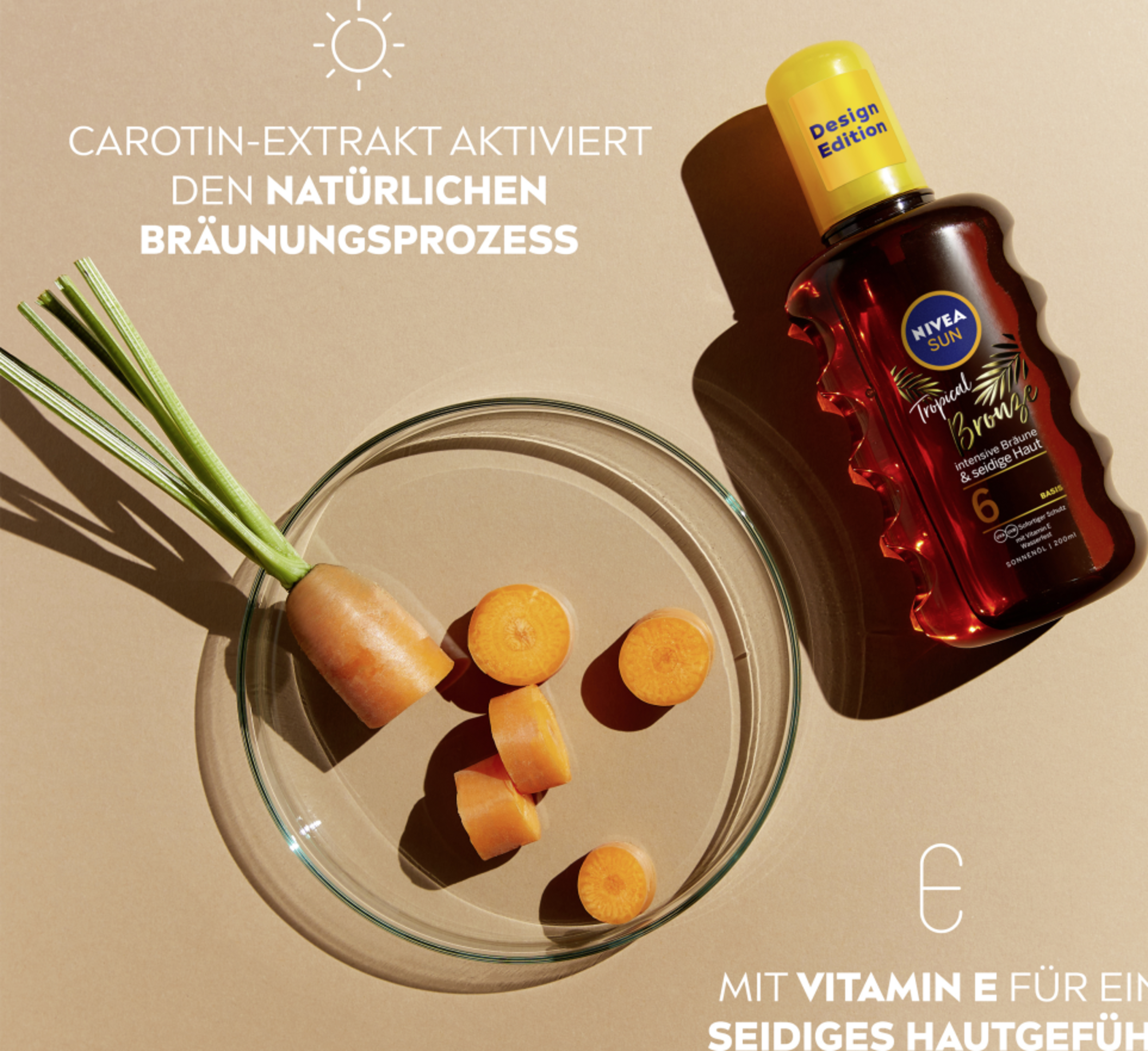 - seidiges Hautgefühl – Formel mit Carotin-Extrakt und Vitamin E