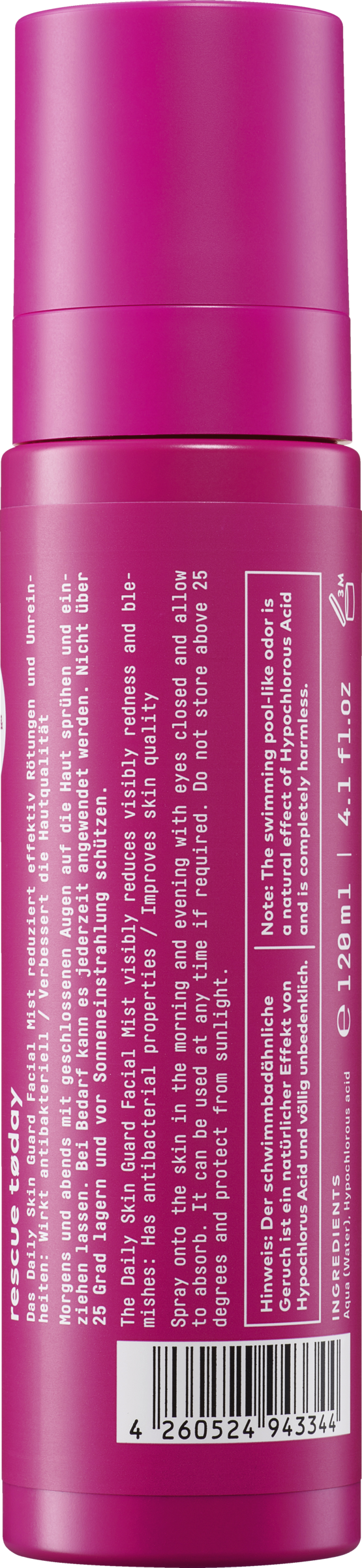 Das Daily Skin Guard Facial Mist rettet die Haut, wann immer sie es braucht – ob morgens oder abends, nach dem Sport, in der Bahn oder bei anderen Situationen, in denen die Haut einer höheren Belastung durch Mikroben oder Reizungen ausgesetzt ist.