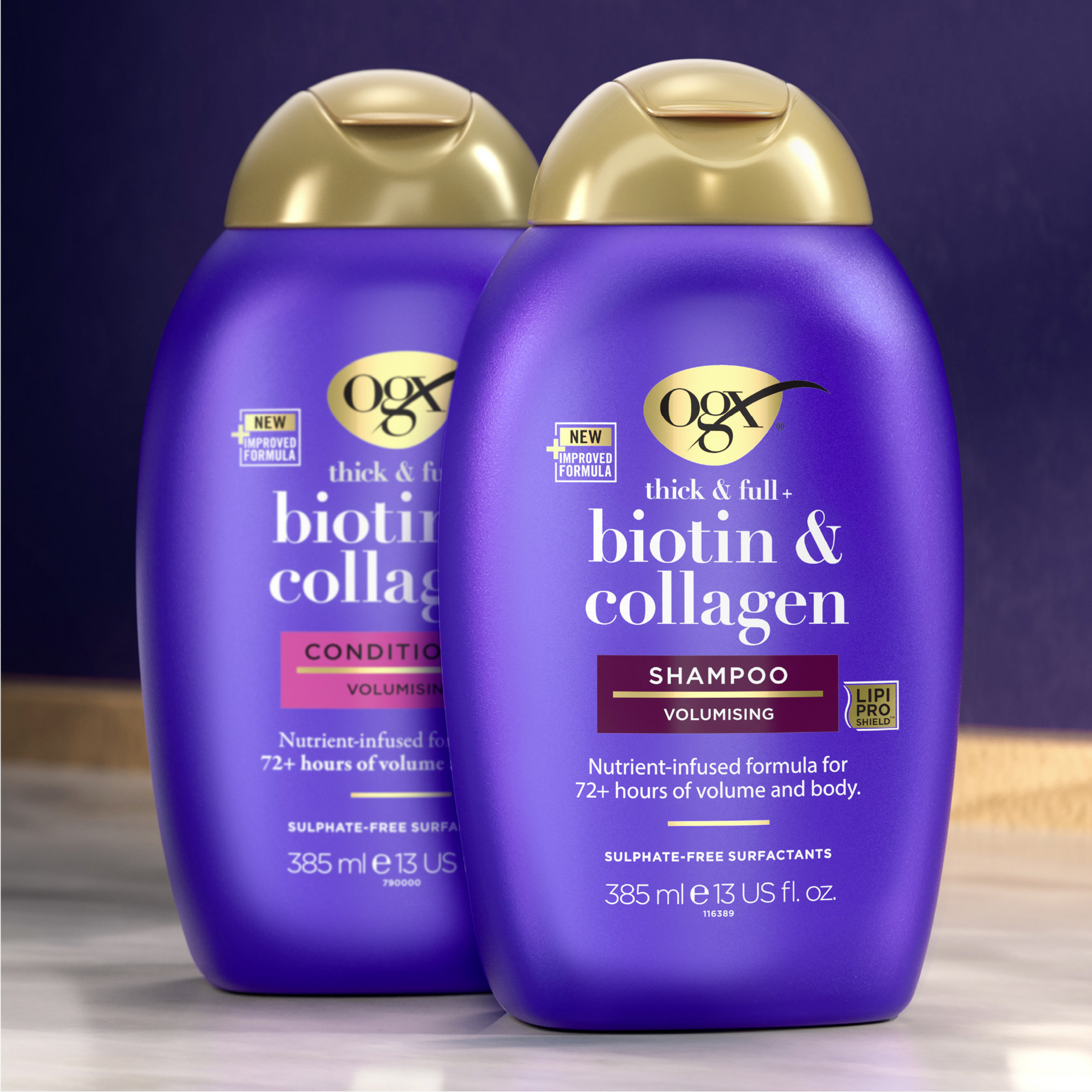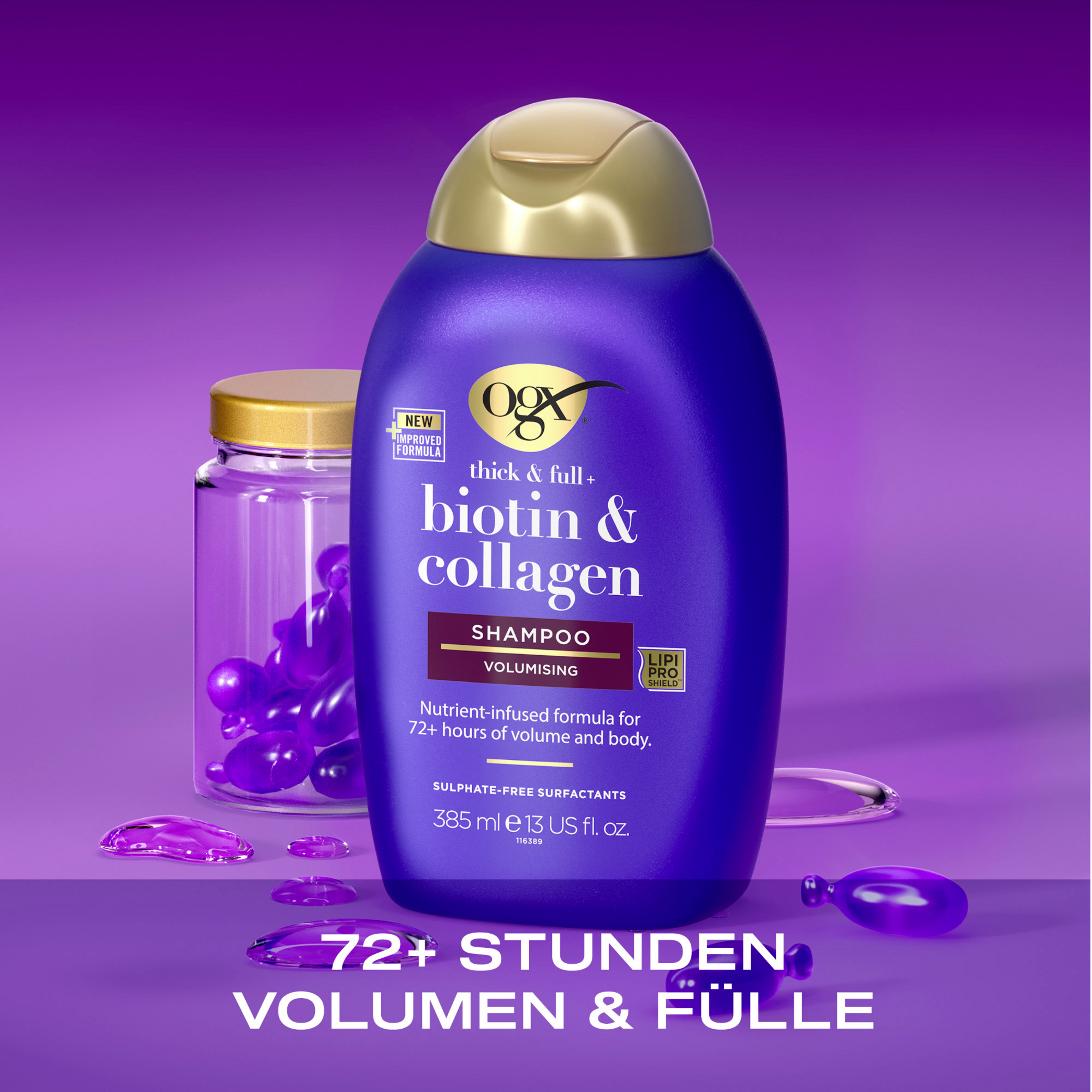 - nährstoffreiche & kräftigende Formel – Das OGX Thick & Full Biotin & Collagen Shampoo mit Vitamin B7 Biotin, Kollagen und hydrolysiertem Weizenprotein ist ein Must-have für feines Haar