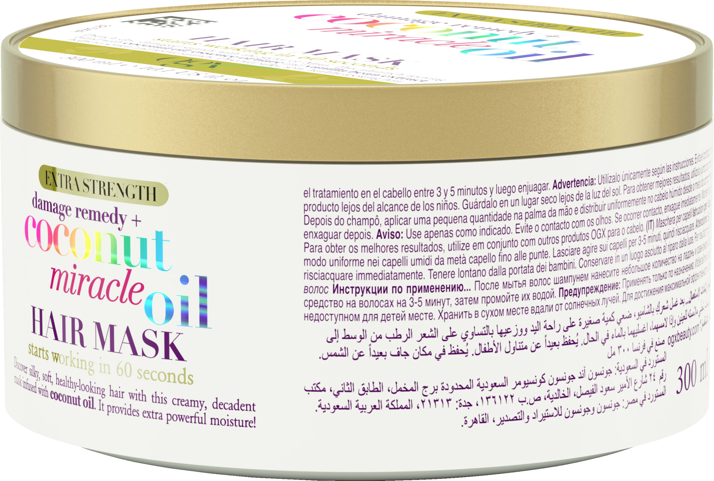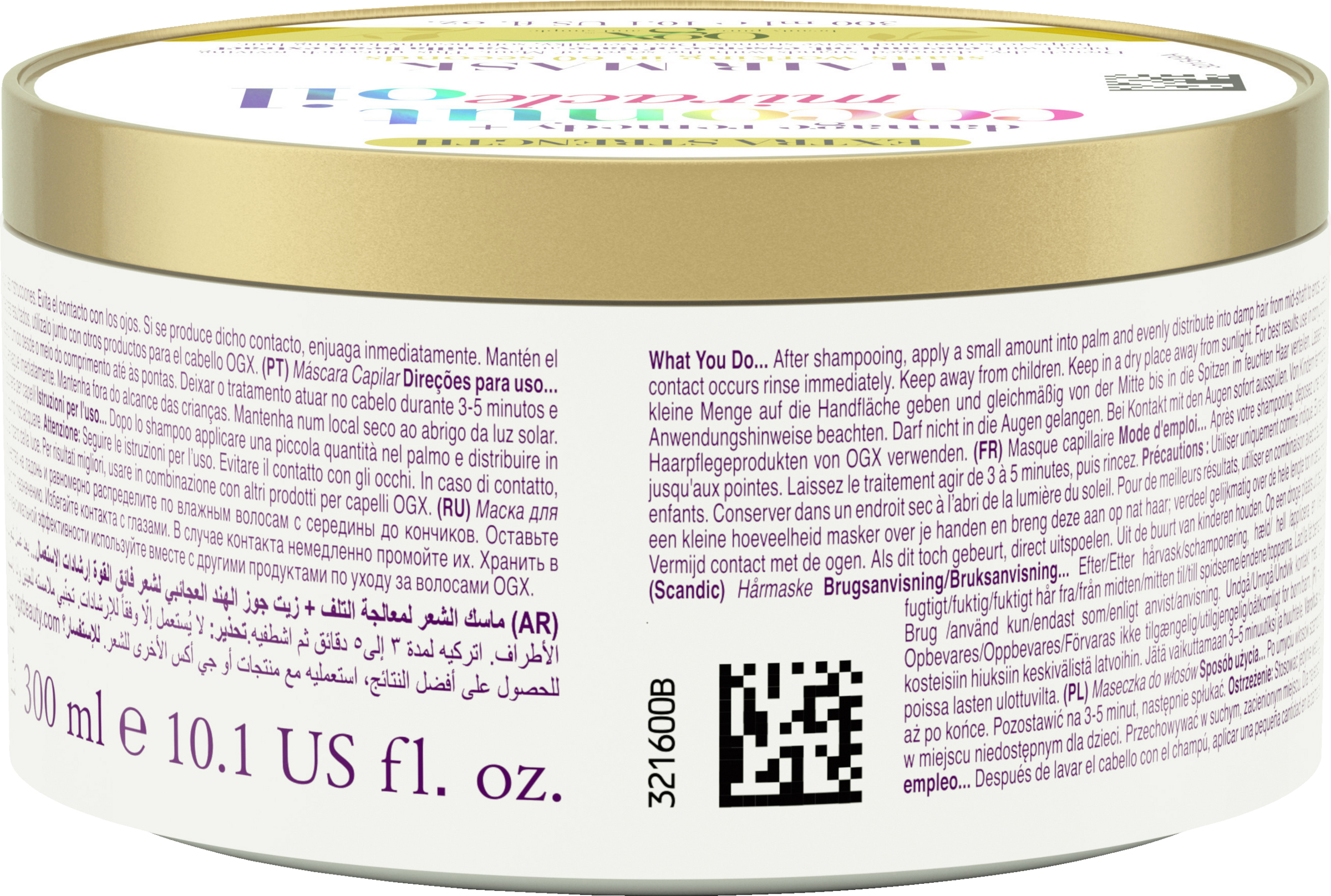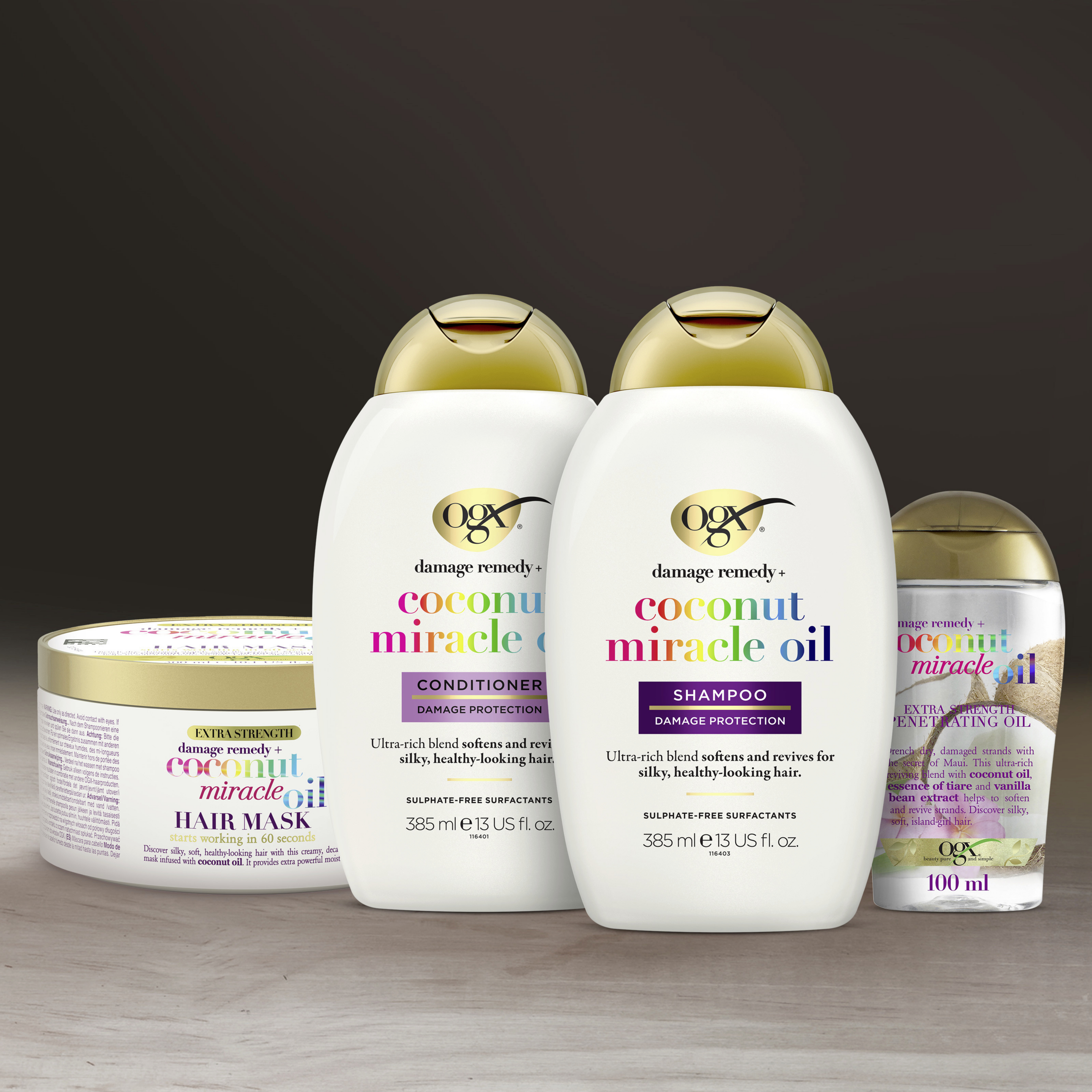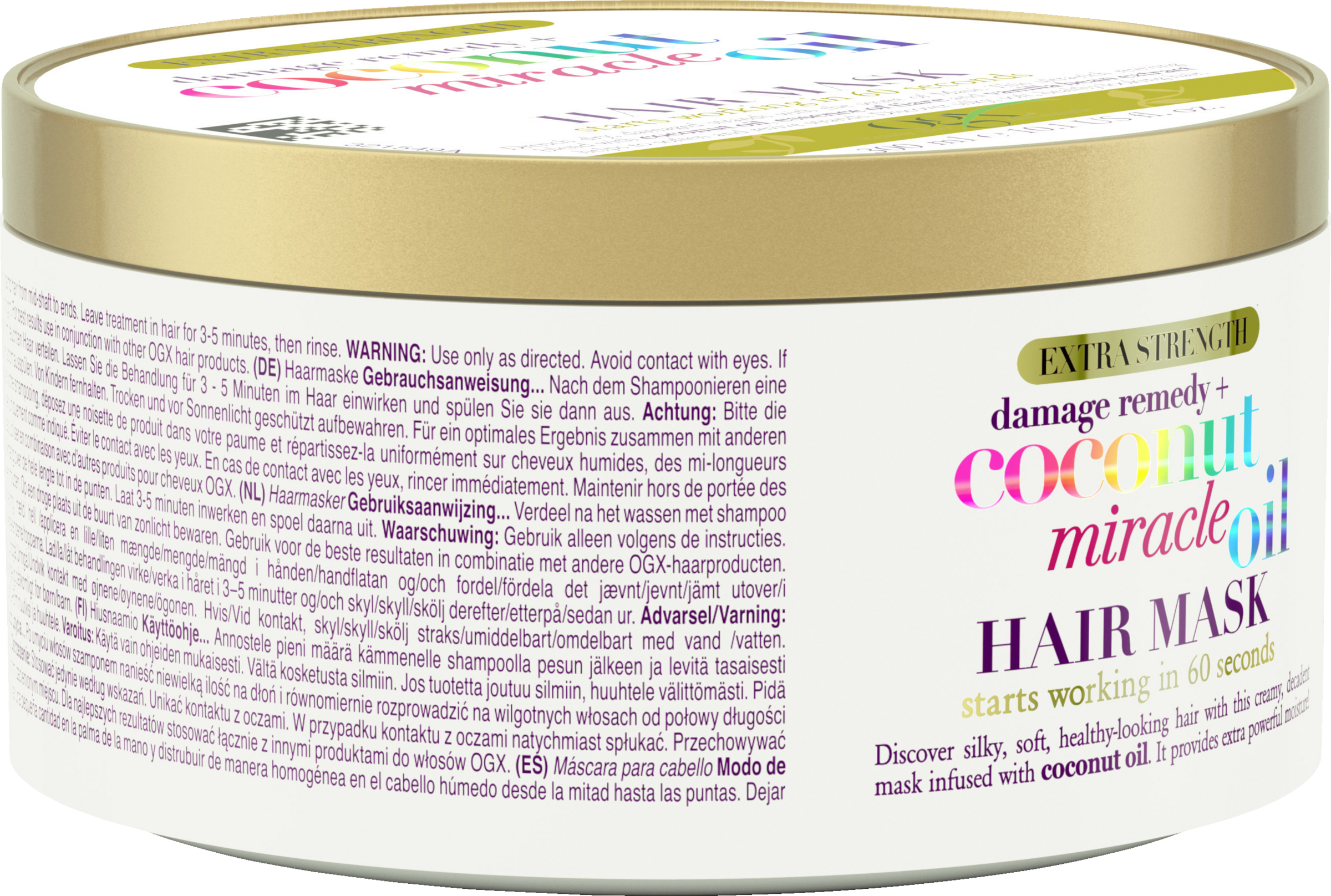 - die extra starke OGX Coconut Miracle Oil Hair Mask mit feuchtigkeitsspendendem Kokosöl, Vanilleschotenextra kt und Tiare-Essenz sorgt für seidig glattes Haar