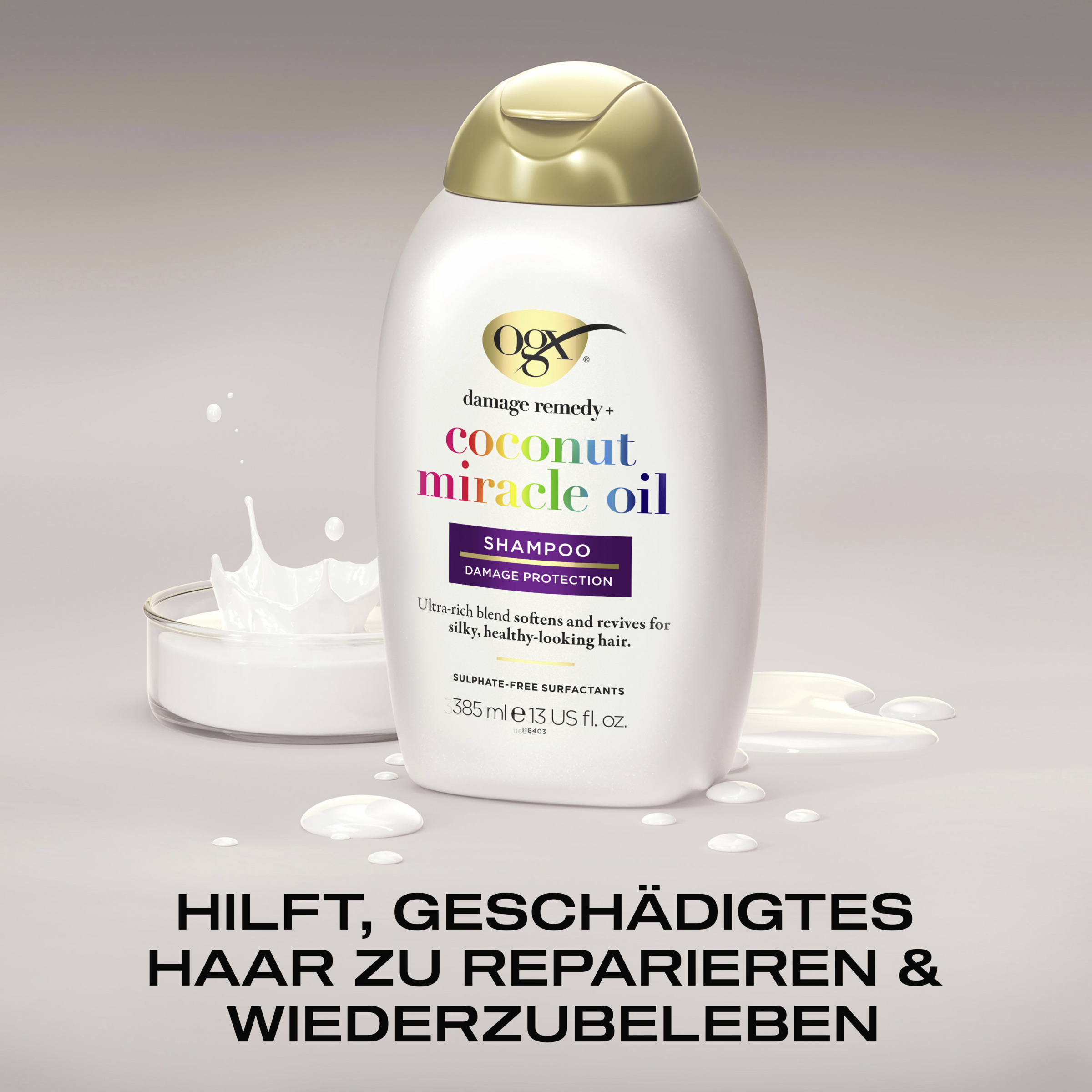 Der Feuchtigkeitsspendende OGX Coconut Miracle Oil Conditioner mit Anti Frizz Formel, Kokosöl, Vanilleextrakt & Essenz der Tiare hilft Locken zu entwirren sowie zu definieren und verleiht einen geschwungenen und seidigen Look. Die ausgesprochen angenehm duftende Haarpflege Spülung für trockenes und krauses Haar macht die Haarwäsche zu einem sinnlichen Erlebnis und hinterlässt einen unwiderstehlich intensiven und lebendigen Haarduft. Die feuchtigkeitsspendende Locken Spülung bändigt krauses & fliegendes Haar, eignet sich ideal für trockenes oder sprödes Haar, sorgt für weiche und geschmeidige Haare und verleiht mehr Glanz und Geschmeidigkeit.