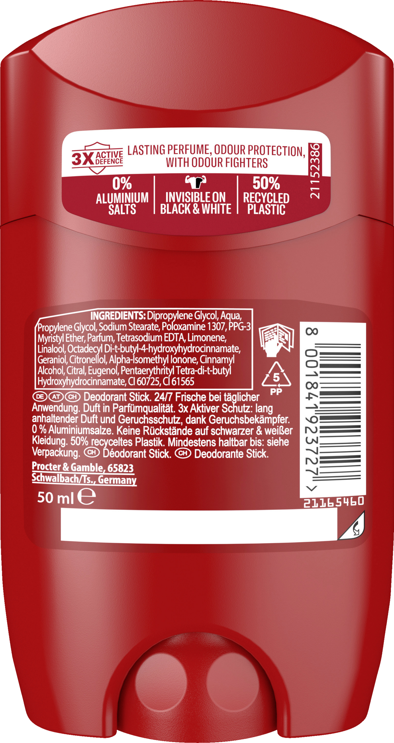 Mann, riechst du gut! Old Spice hilft, Männern durch die Gewässer der Männlichkeit zu steuern und das mit tollen Deo Sticks. Diese lassen dich den ganzen Tag gut riechen, mit einem manntastischen Duft in Parfümqualität, der zu jedem Mann passt. Sie bieten 48H Frische, sind ohne Aluminiumsalze und hinterlassen dabei weder weisse noch gelbe Flecken auf schwarzer oder weisser Kleidung. Teste den Original-Duft in Parfümqualität von Old Spice. Tauche ein in die faszinierende Welt der zeitlosen Frische, die den opulenten Duft von Zimt, Vanille und herben Zitrusfrüchten verkörpert. Ahoi!