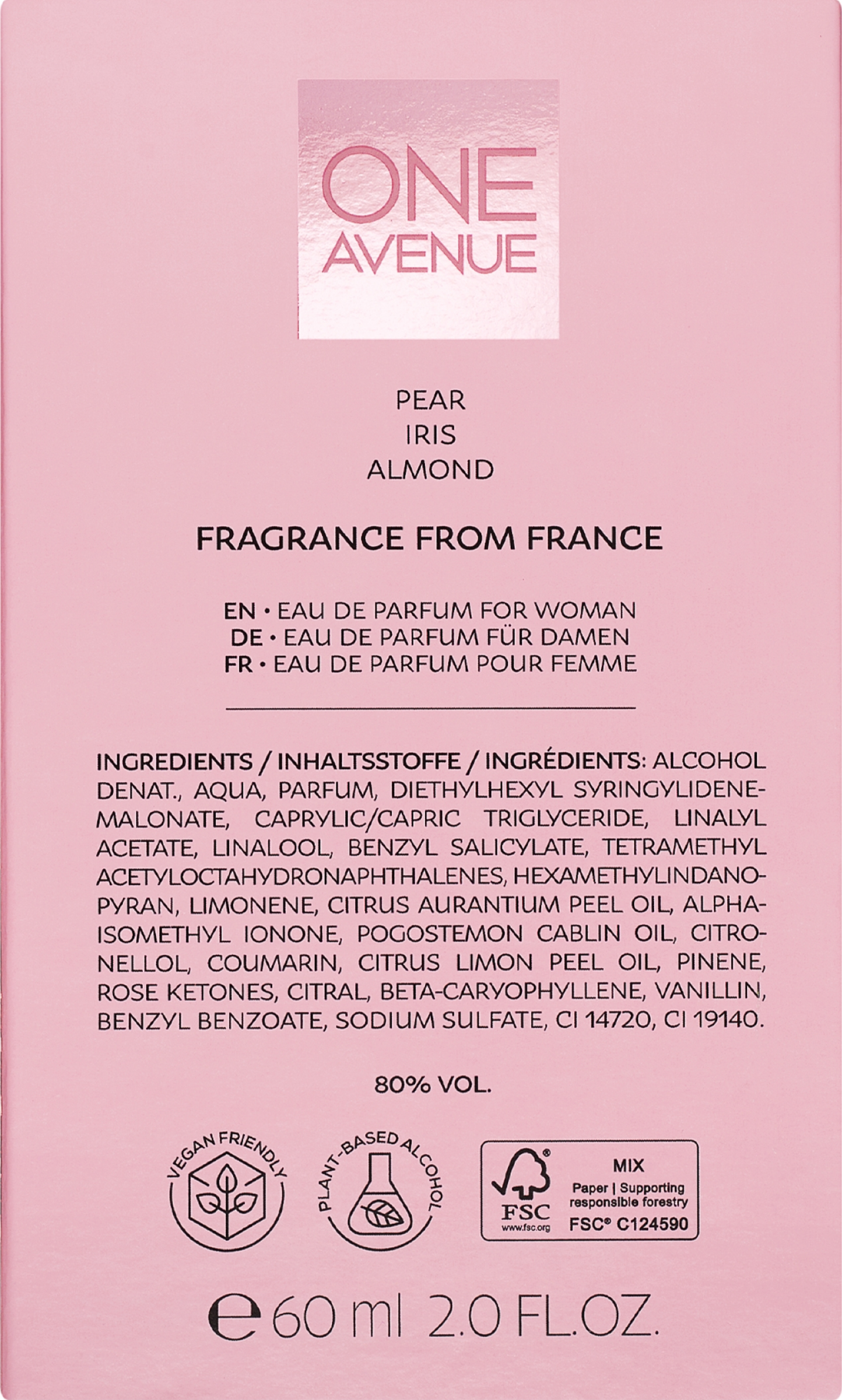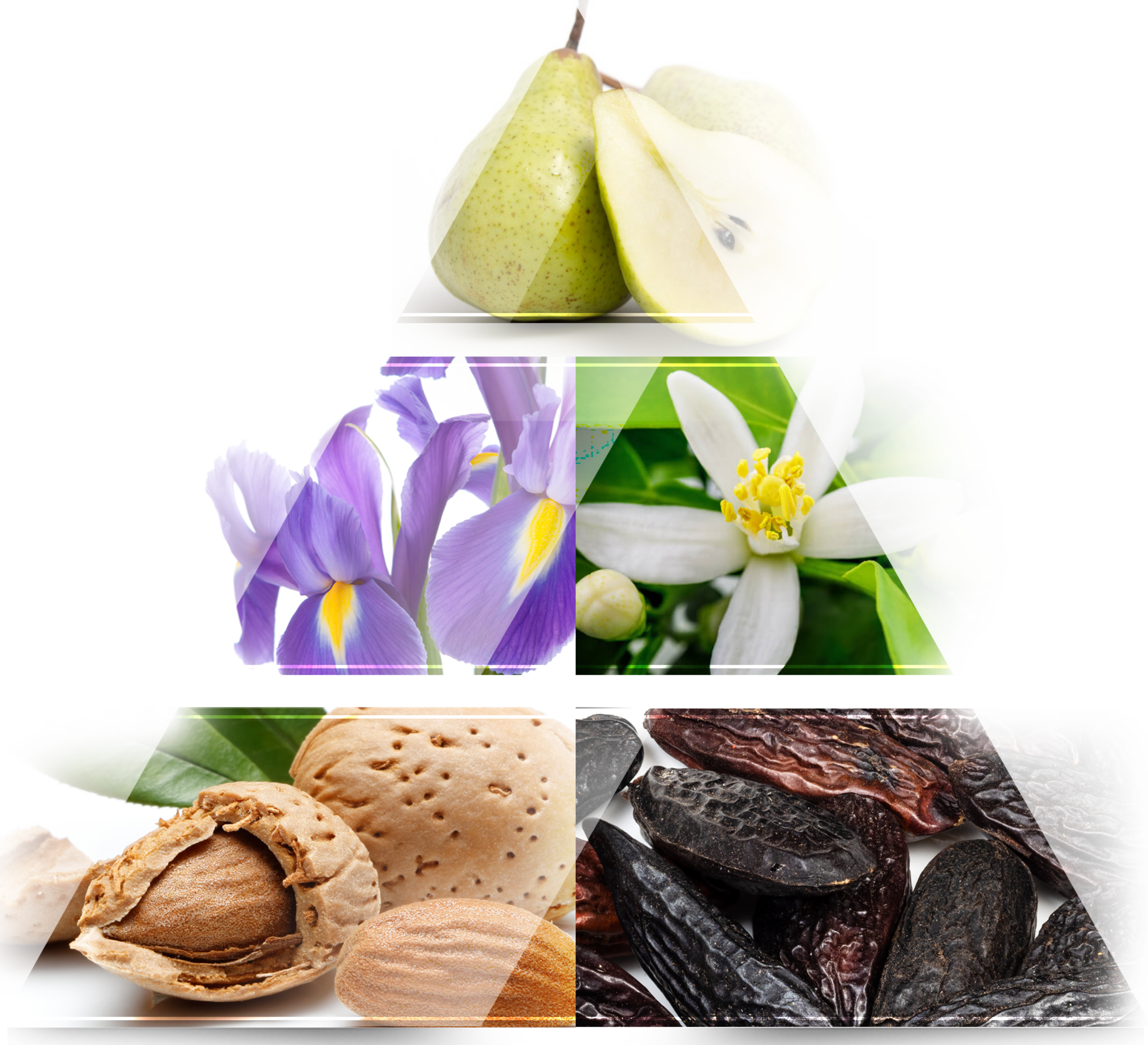 - Herznote: Schwertlilie, Orangenblüte, Jasmin