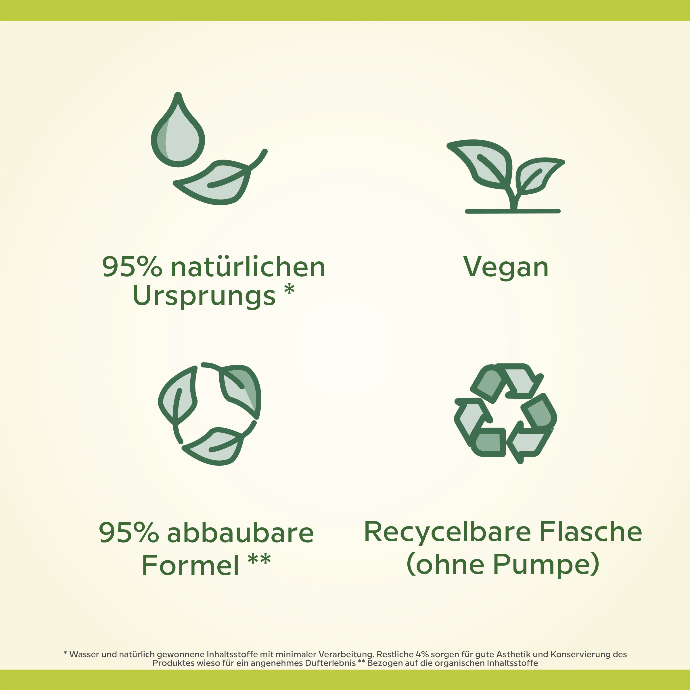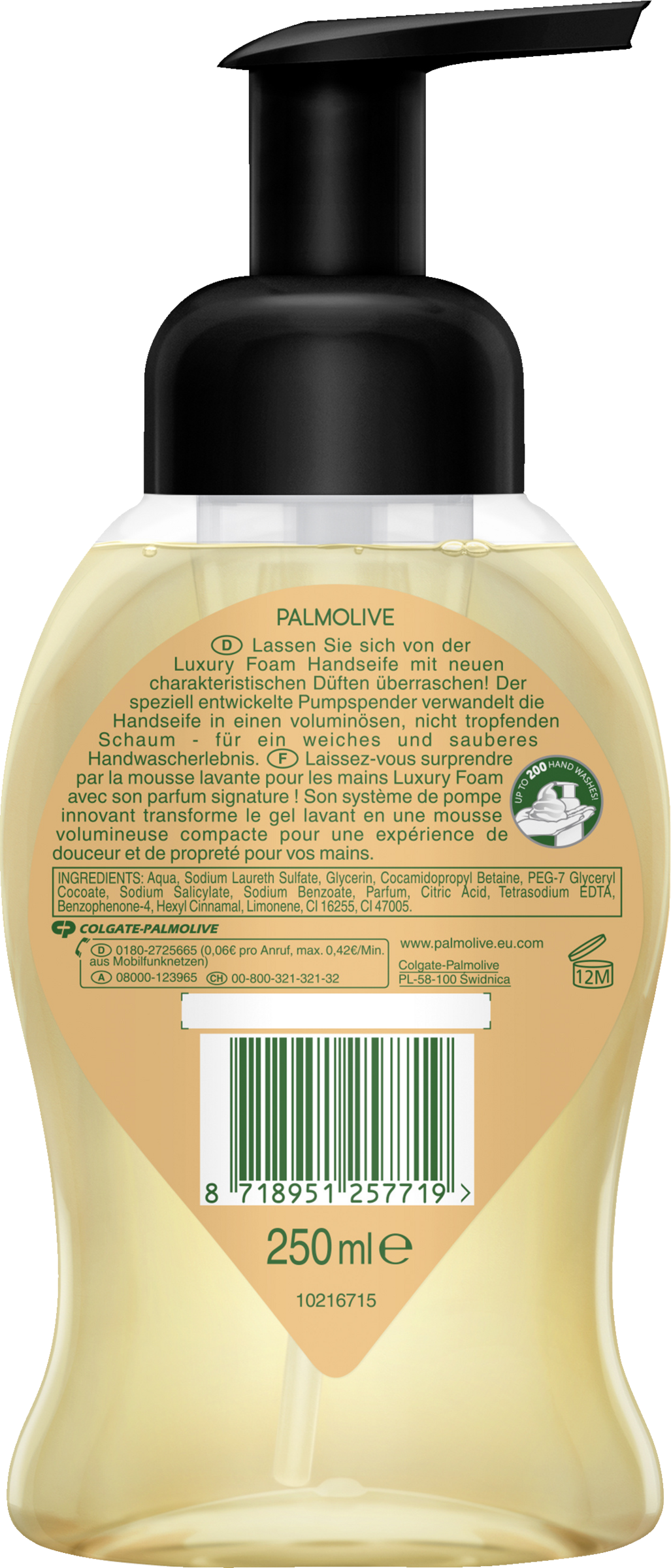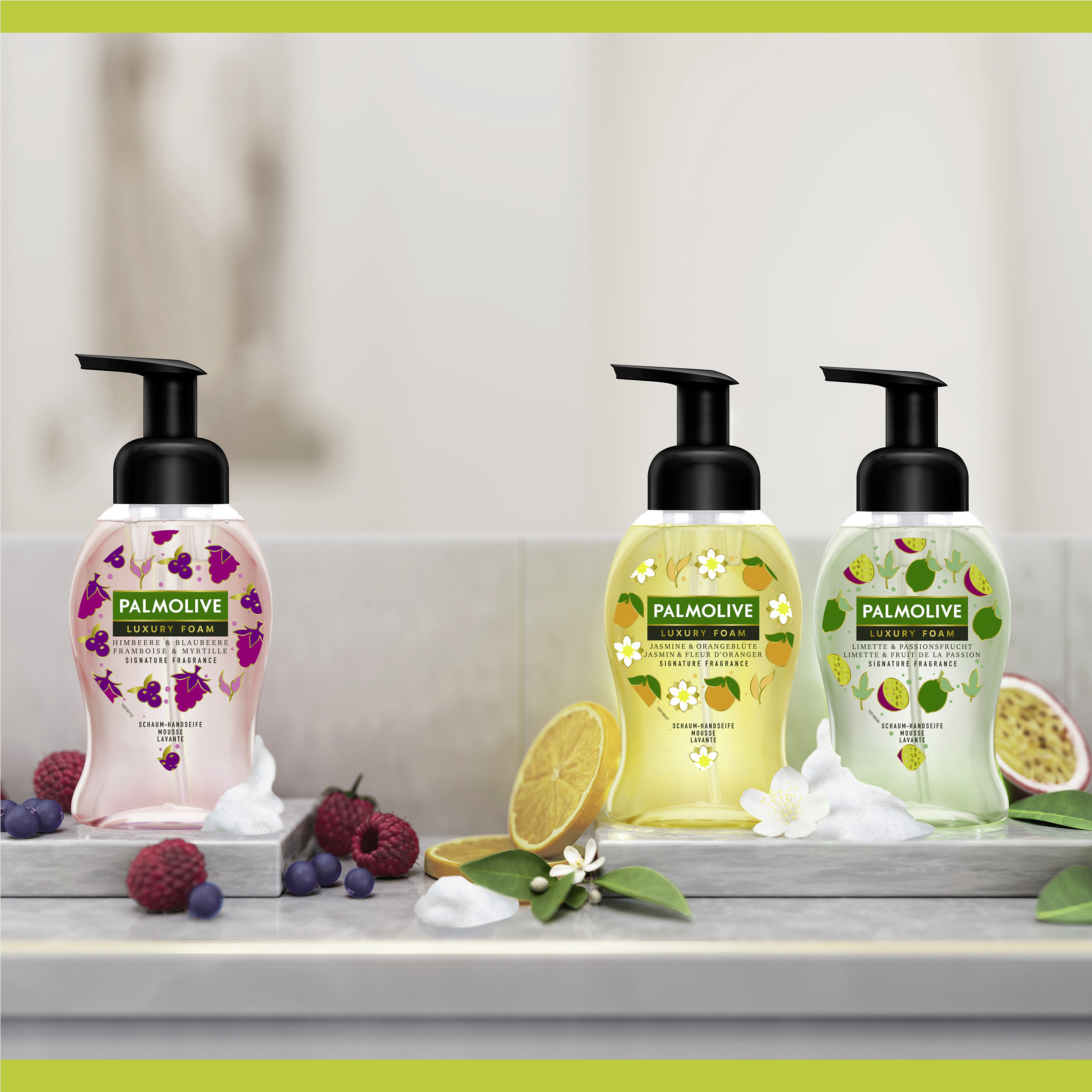 Lassen Sie sich von der Luxury Foam Handseife mit neuen charakteristischen Düften überraschen! Der speziell entwickelte Pumpspender verwandelt die Handseife in einen voluminösen, nicht tropfenden Schaum - für ein weiches und sauberes Handwascherlebnis.