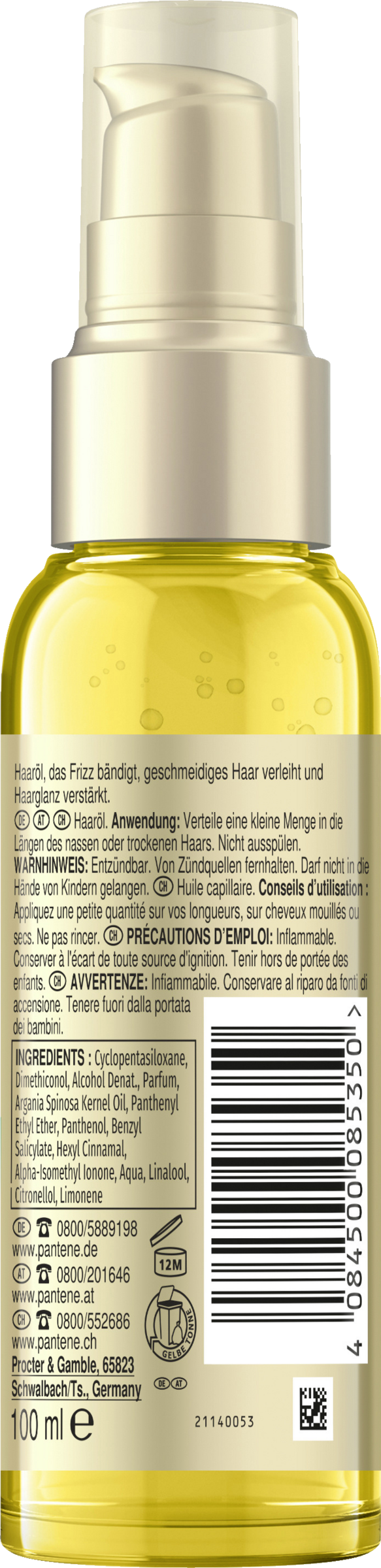 Das Pantene Pro-V Argan Infused Haaröl für die tägliche Pflege bändigt Frizz und verbessert den Glanz. Das Öl macht das Haar seidig, geschmeidig und versorgt es mit wertvollem Arganöl - für fließendes Haar voller Lebendigkeit. Es eignet sich perfekt für trockenes, geschädigtes Haar. Getestet vom Schweizerischen Vitamininstitut.