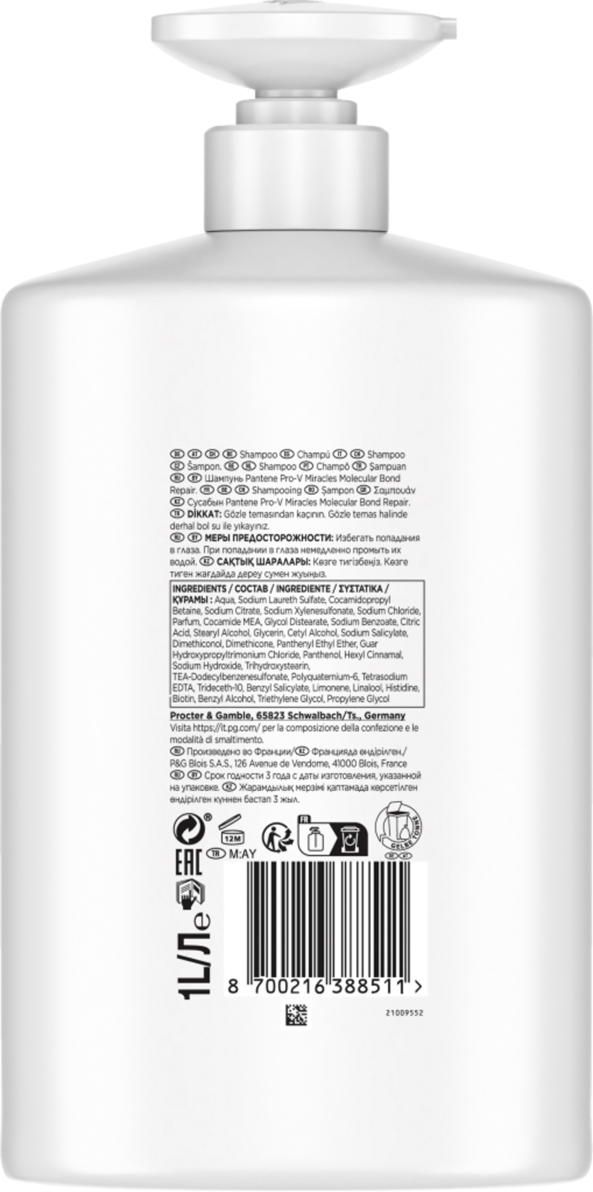 Endecke das Shampoo von Pantene Pro-V mit Biotin für eine Reparatur der Haarbindungen auf molekularer Ebene. Unser Haar enthält Millionen von Bindungen, die mit der Zeit brechen und zu Haarschäden führen. Wenn dein Haar ein Wunder(mittel) braucht, hilft das molecular Bond Repair Shampoo, die Haarbindungen auf molekularer Ebene zu schützen. Das Haar wird sichtbar gesünder und regenerierter*. Die Miracles Formel ist angereichert mit Biotin und den am höchsten konzentrierten Pro-V-Nährstoffen. Die molecular Bond Repair-Serie wurde entwickelt, um das Aussehen von geschädigtem Haar zu verbessern*. Für beste Ergebnisse, zusammen mit den anderen Haarprodukten der molecular Bond Repair-Serie verwenden.