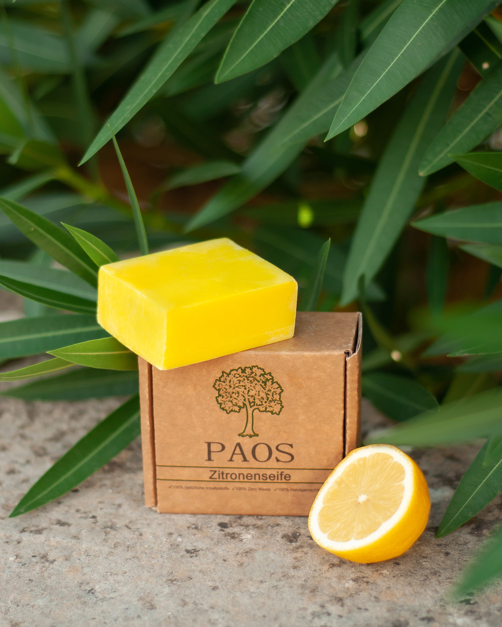 - Naturseife aus den Hauptbestandteilen: Zitrone und Olivenöl