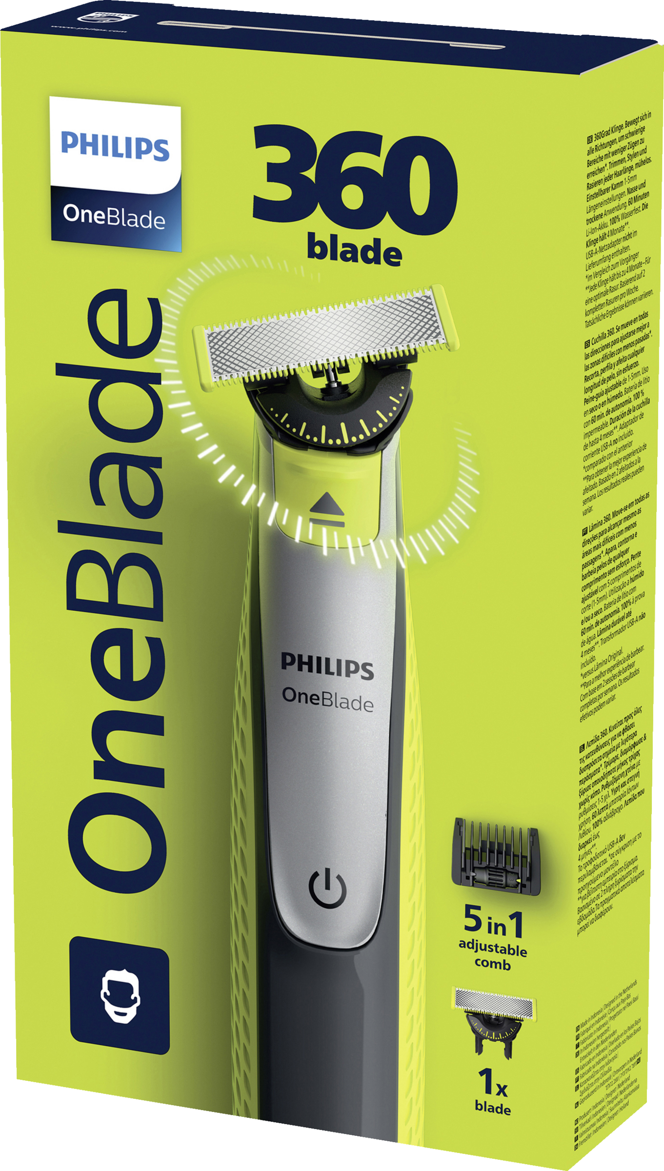 Der Philips OneBlade 360 Face QP2734/23 ist der ultimative Elektrorasierer, der Ihnen das Trimmen, Rasieren und Stylen von Haaren jeder Länge mühelos ermöglicht.