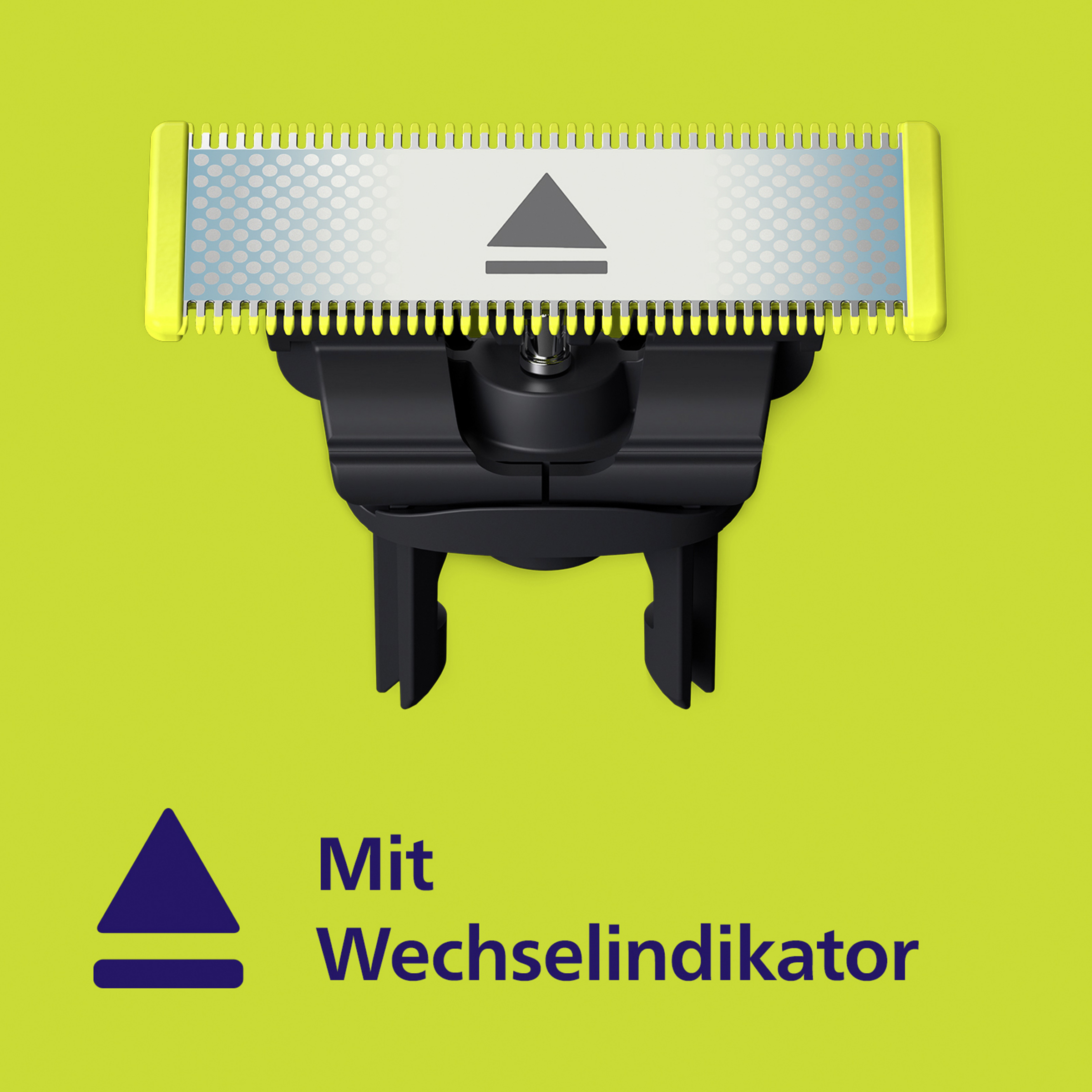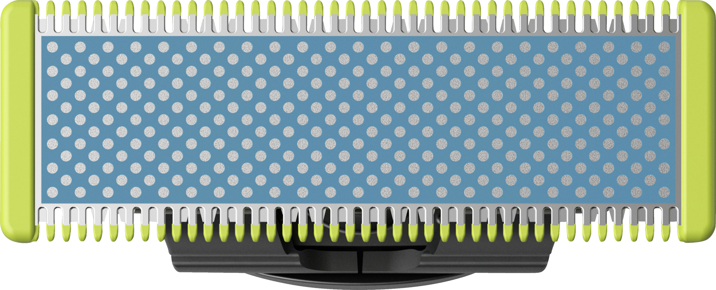Der Philips OneBlade First Shave schützt die Haut durch das Zweifach-Schutzsystem beim Rasieren vor Schnittverletzungen.