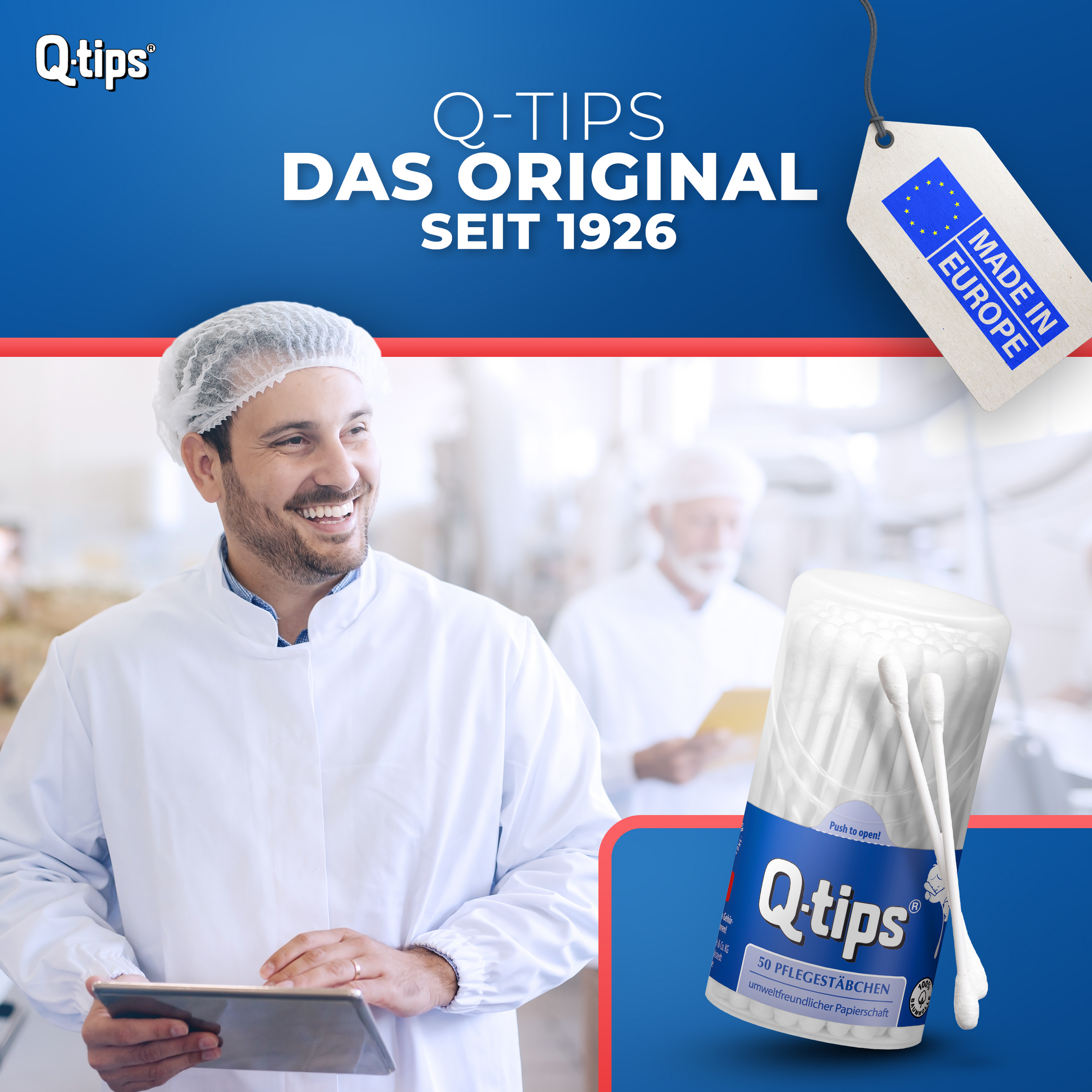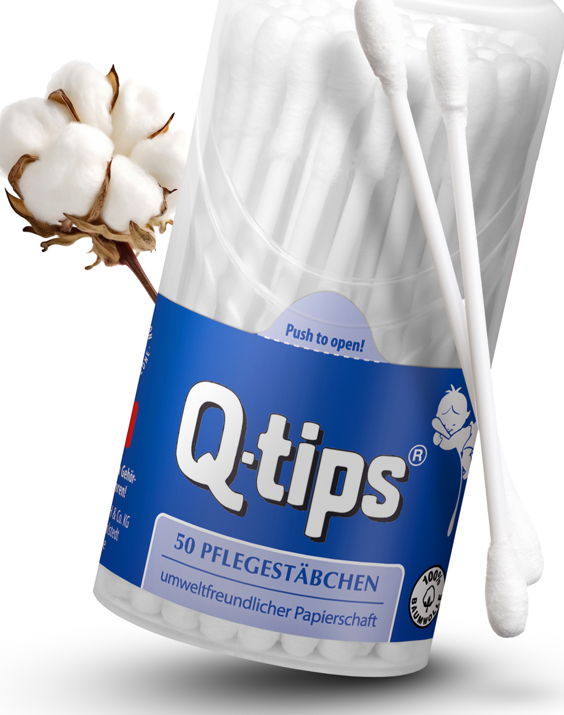 Q-tips® Pflegestäbchen sind wattesanft, hygienisch und haben Tupfer aus 100% Baumwolle.