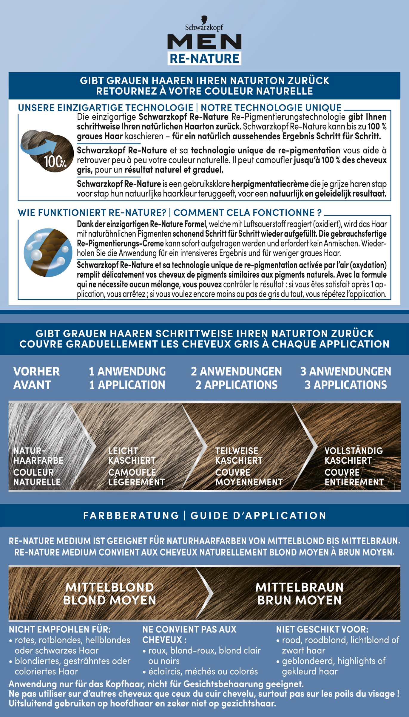 Gibt grauen Haaren ihren Naturton zurück, für ein natürlich aussehendes und harmonisches Farbergebnis. Die einzigartige Schwarzkopf Re-Nature Re-Pigmentierungstechnologie gibt Ihnen schrittweise Ihren natürlichen Haarton zurück. Schwarzkopf Re-Nature kann bis zu 100% graues Haar kaschieren - für ein natürlich aussehendes Ergebnis Schritt für Schritt.