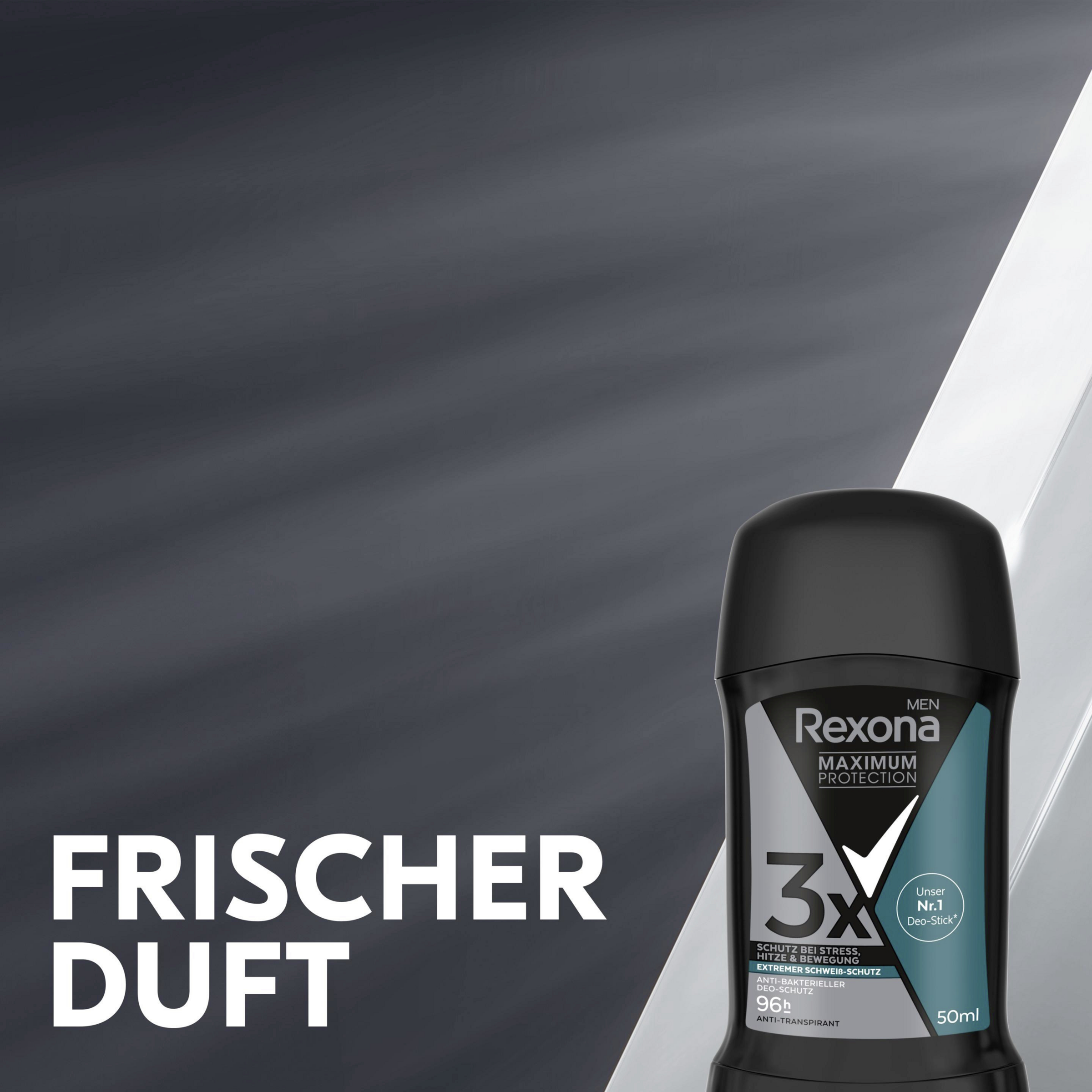 - Rexona Men Maximum Protection Antitranspirant Deo-Stick Antibakterieller Deo-Schutz bietet bis zu 96 Stunden extra starken und langanhaltenden Schutz vor Schweiß und Körpergeruch