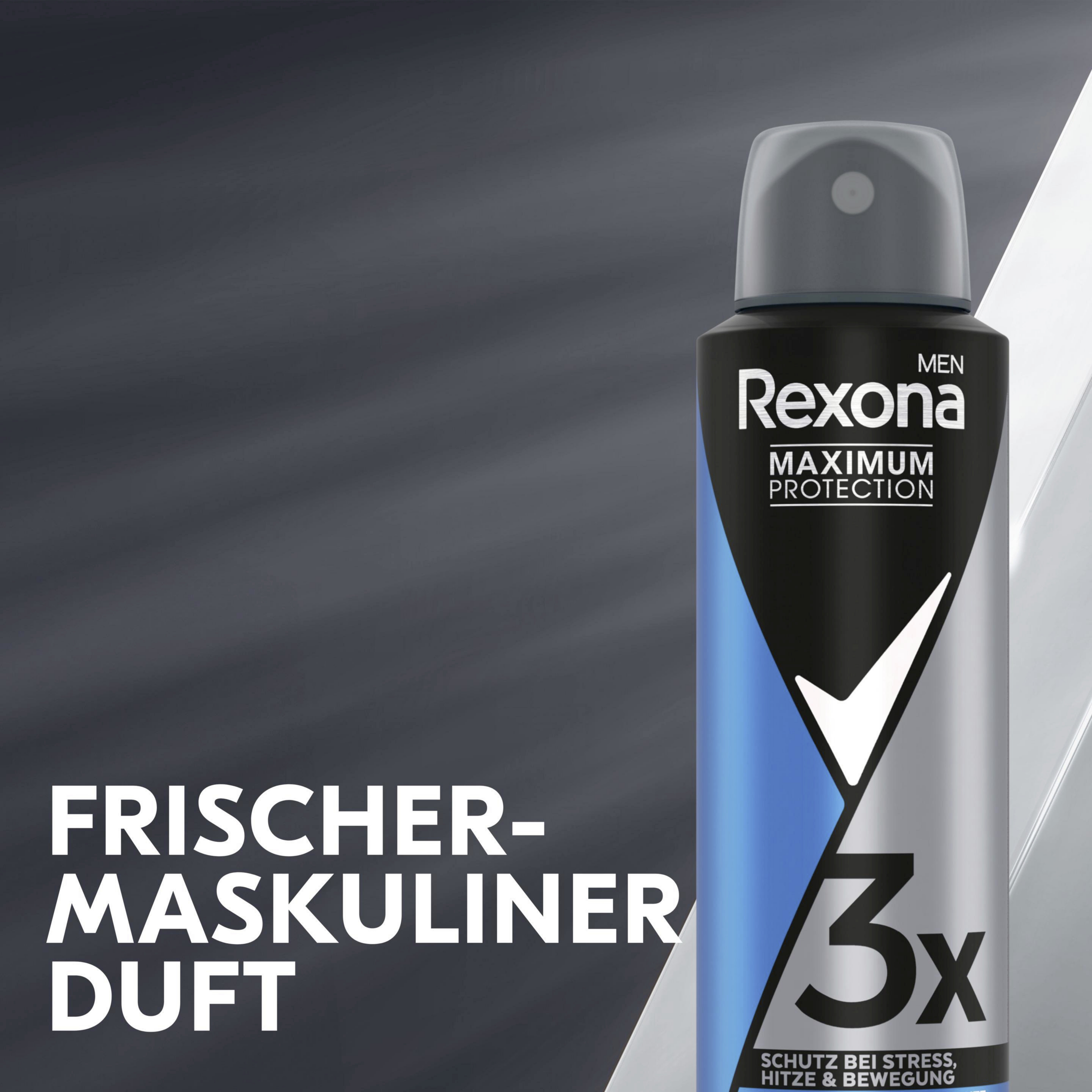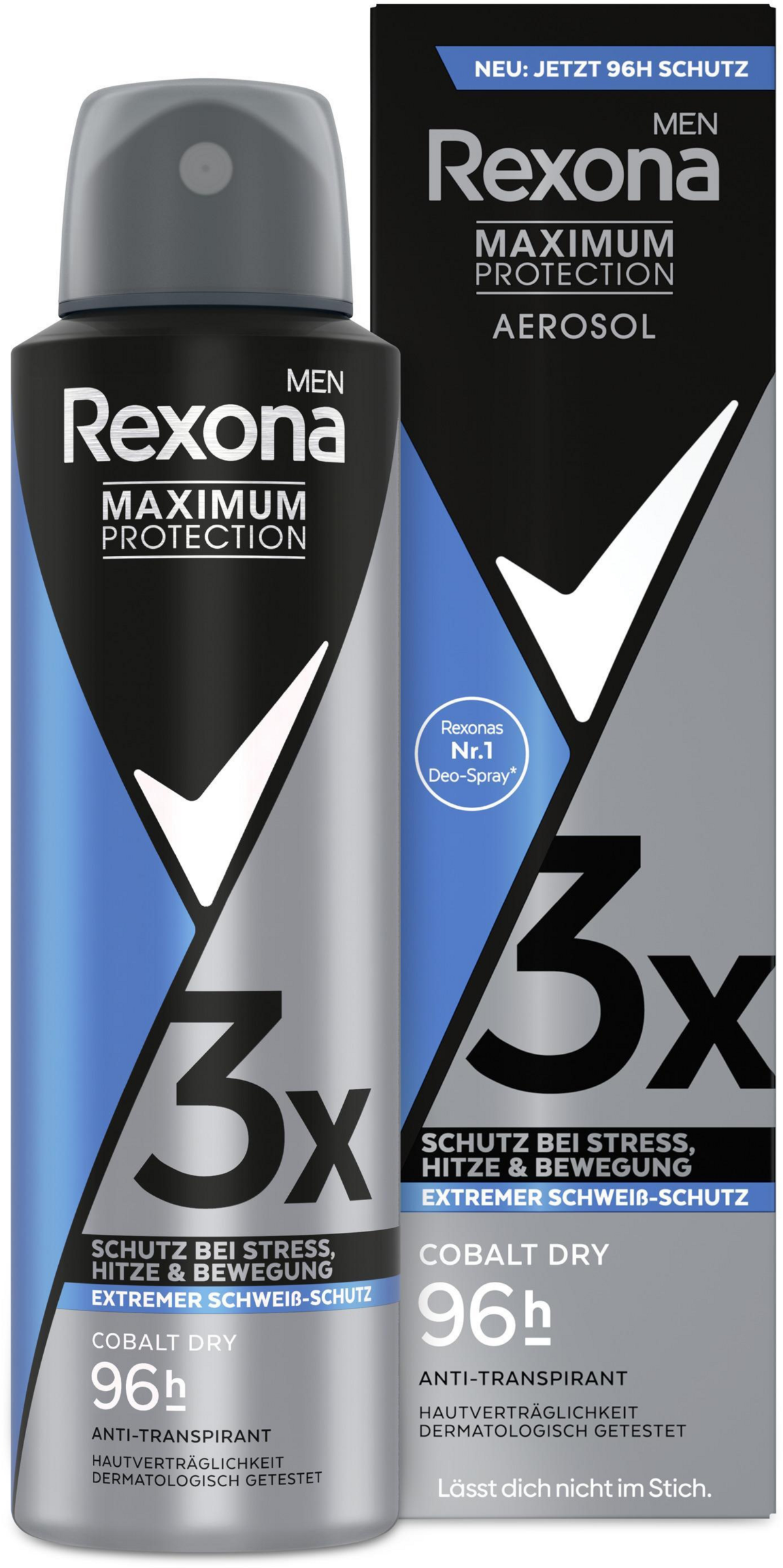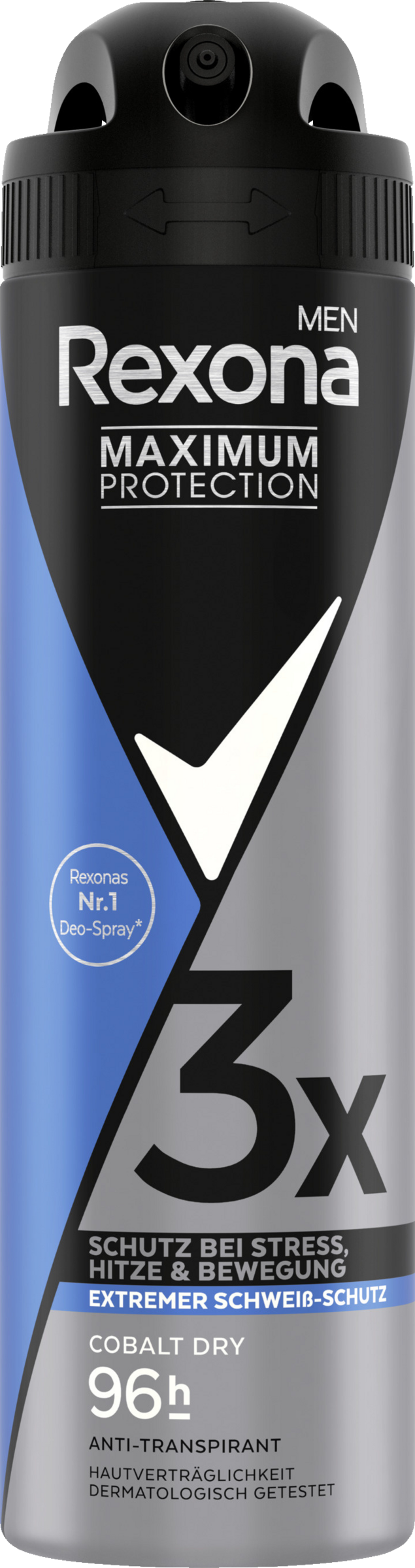- Rexona Men Maximum Protection Deospray Cobalt Dry bietet bis zu 96 Stunden extra starken und langanhaltenden Schutz vor Schweiß und Körpergeruch