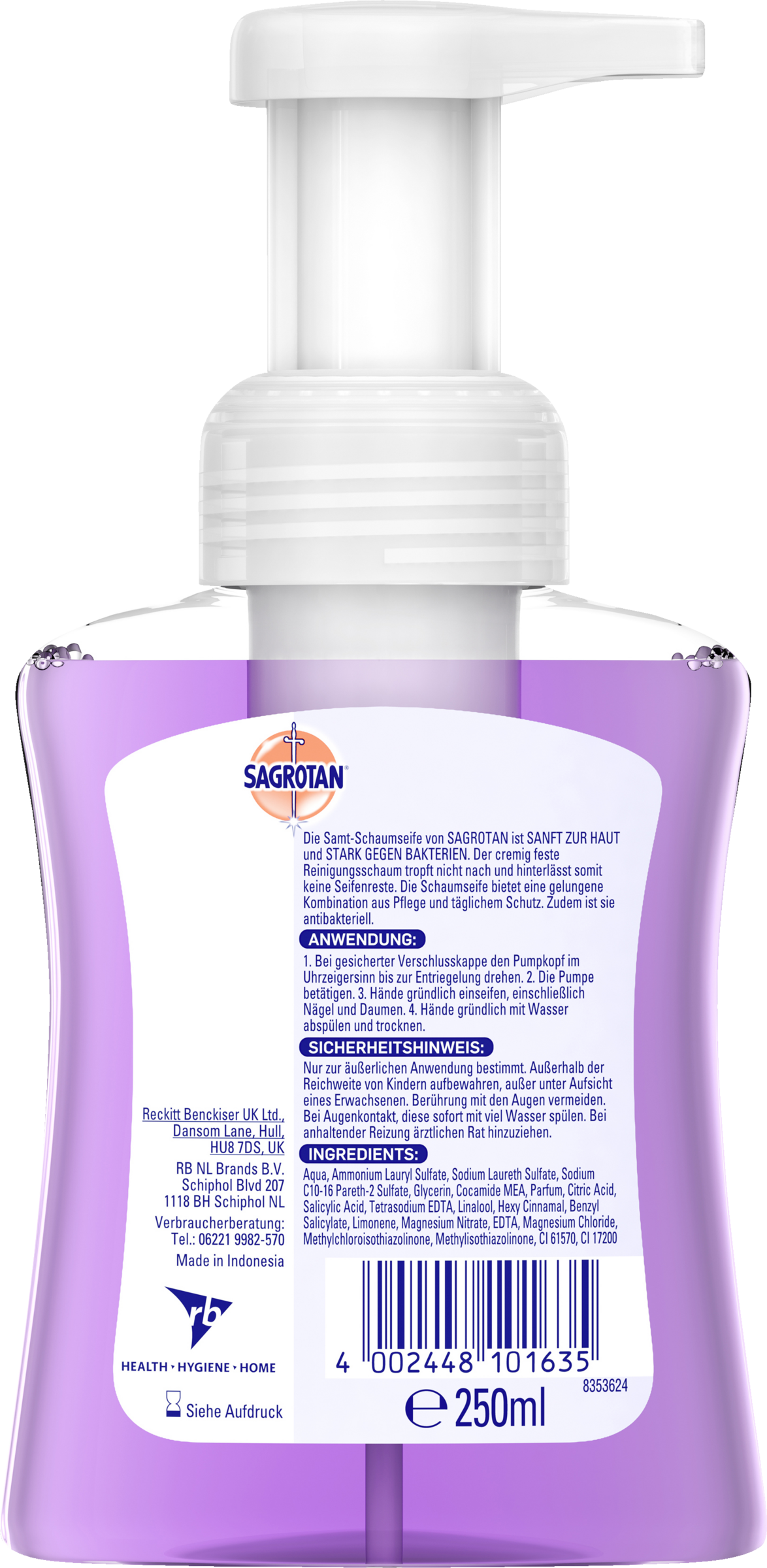 Sagrotan Samtschaum ist ein Handwaschschaum mit Dual-Effekt: Sanfte Schaumseife - Stark gegen Bakterien. Er enhält mindestens 45% weniger chemische Inhaltsstoffe im Vergleich zu Sagrotan flüssige Handseife pro Pumpanwendung.