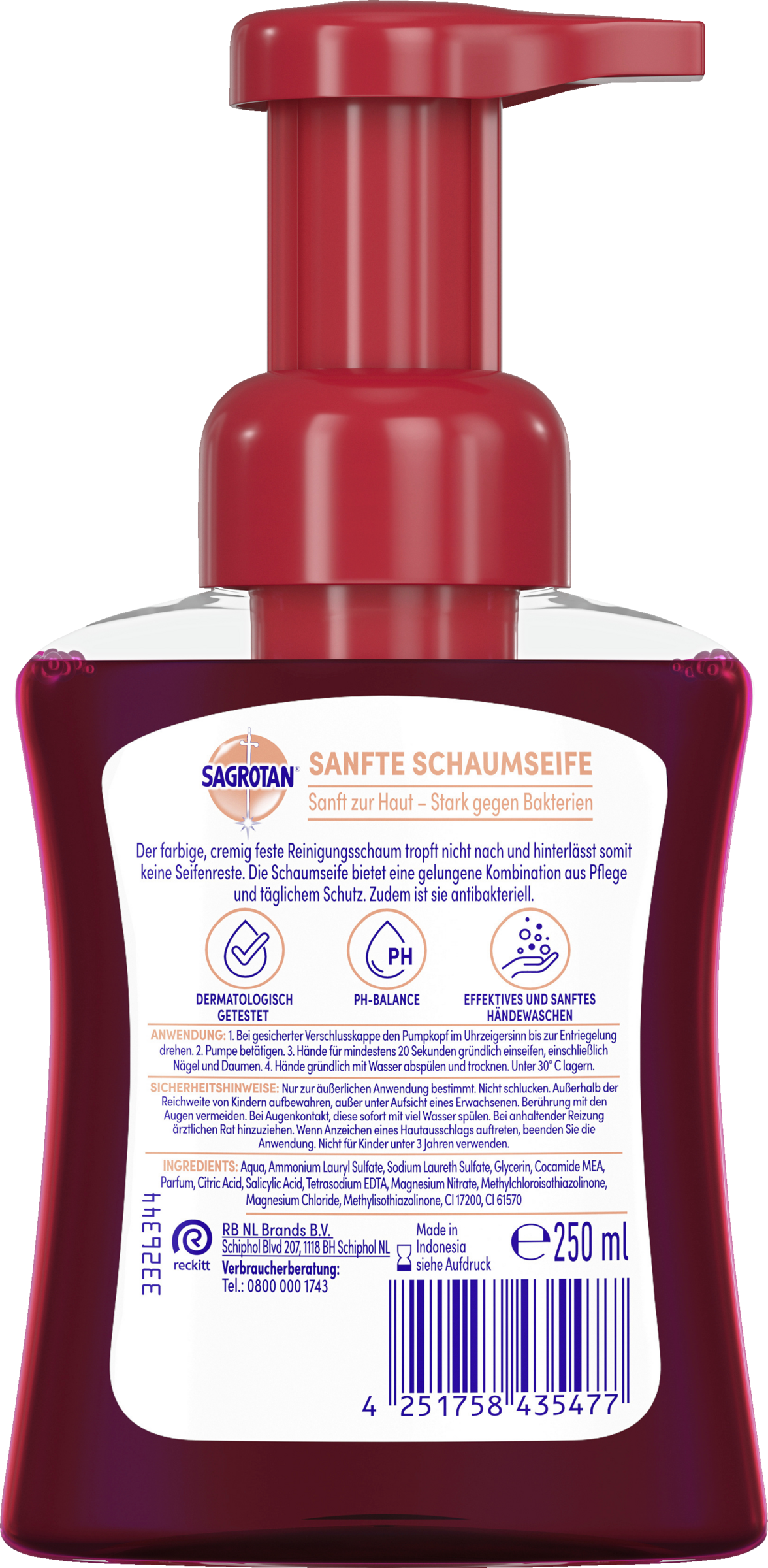 Der farbige und sanft-cremige Handwaschschaum von Sagrotan ist antibakteriell, feuchtigkeitsspendend und reinigt die Hände hygienisch. Erfrischende & antibakterielle Schaumseife - Sanft zur Haut, stark gegen Bakterien. Duftet nach Erdbeeren.