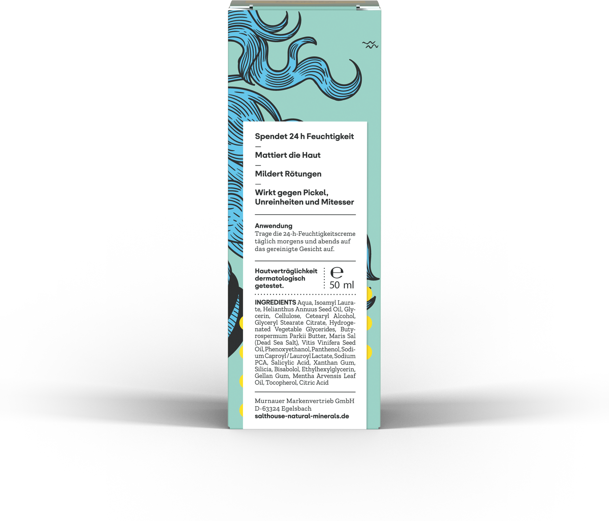 Aqua, Isoamyl Laurate, Helianthus Annuus Seed Oil, Glycerin, Cellulose, Cetearyl Alcohol, Glyceryl Stearate Citrate, Hydrogenated Vegetable Glycerides, Butyrospermum Parkii Butter, Maris Sal (Dead Sea Salt), Vitis Vinifera Seed Oil, Phenoxyethanol, Panthenol, Sodium Caproyl / Lauroyl Lactate, Sodium PCA, Salicylic Acid, Xanthan Gum, Silicia, Bisabolol, Ethylhexylglycerin, Gellan Gum, Mentha Arvensis Leaf Oil, Tocopherol, Citric Acid