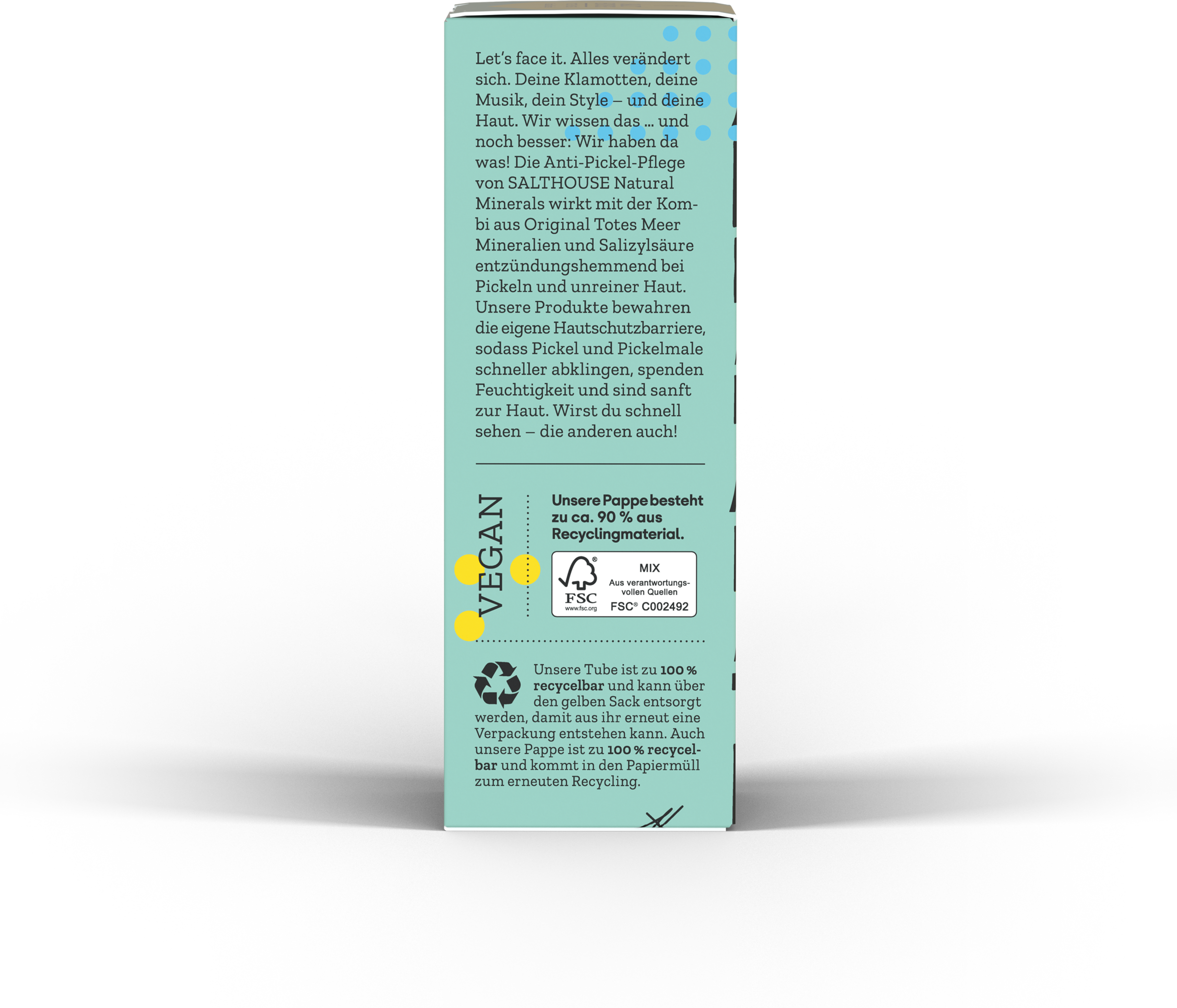 Die Anti-Pickel-Pflege von Salthouse Natural Minerals wirkt mit der Kombi aus Original Totes Meer Mineralien und Salizylsäure entzündungshemmend bei Pickeln und unreiner Haut. Die Produkte bewahren die eigene Hautschutzbarriere, sodass Pickel und Pickelmale schneller abklingen, spenden Feuchtigkeit und sind sanft zur Haut. Wirst du schnell sehen, die anderen auch!