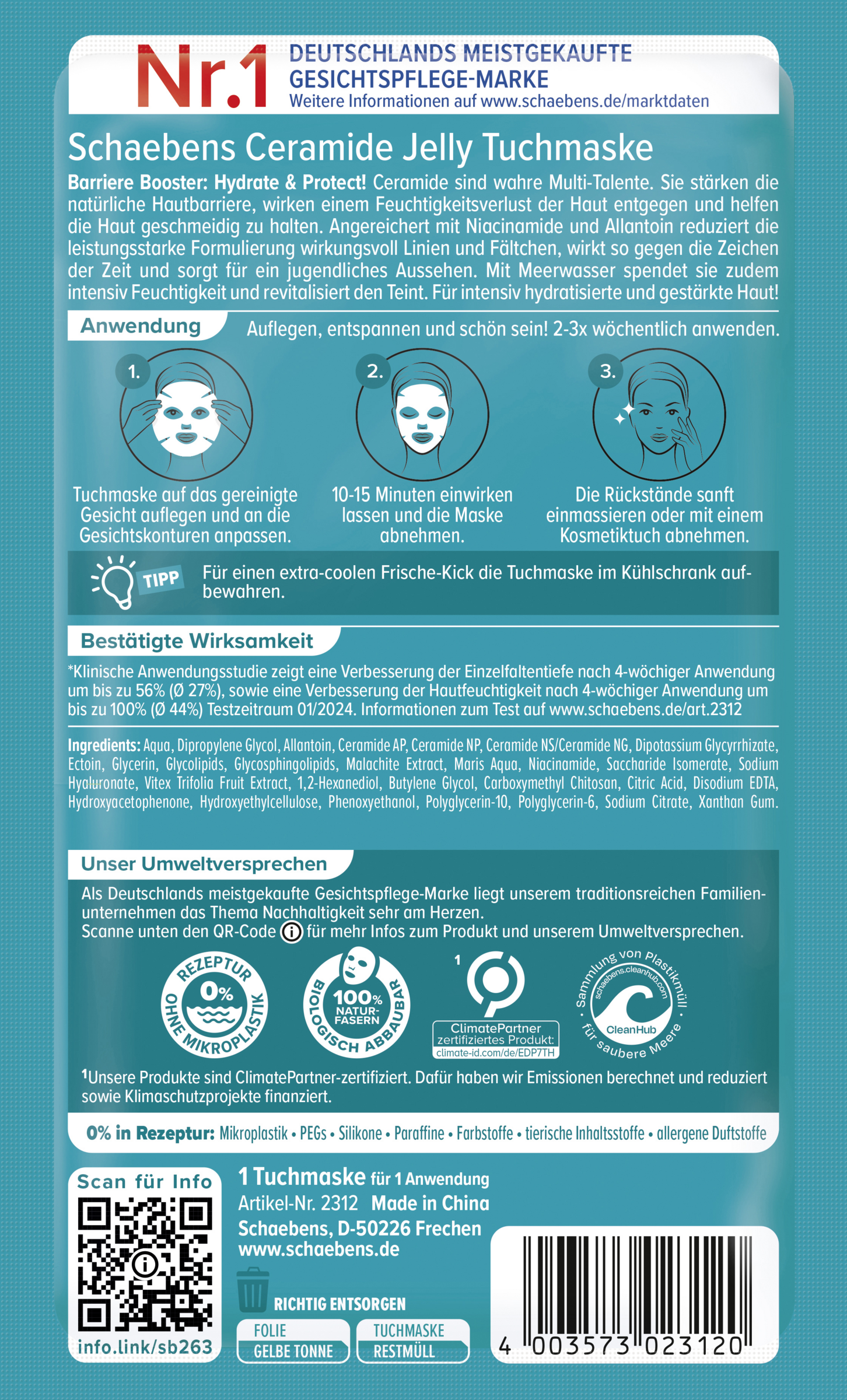 - frei von PEGs, Silikonen, Paraffinen, Farbstoffen & allergenen Duftstoffen
