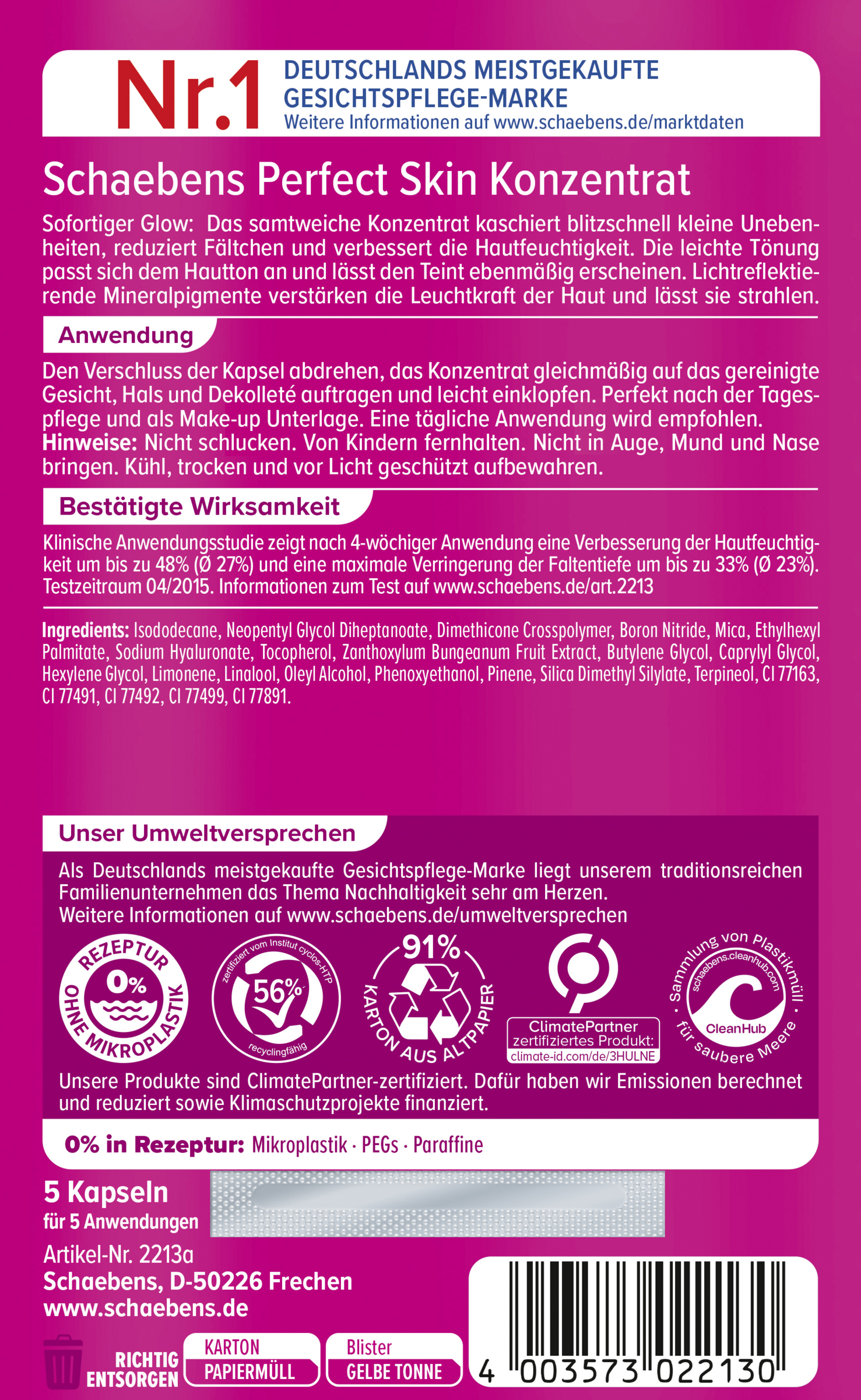 Den Verschluss der Kapsel abdrehen, das Konzentrat gleichmäßig auf das gereinigte Gesicht, Hals und Dekolleté auftragen und leicht einklopfen. Perfekt nach der Tagespflege und als Make-up Unterlage. Eine tägliche Anwendung wird empfohlen. . **Vereinzelt können Hautunverträglichkeitsreaktionen auftreten. Allergiker sollten die Inhaltsstoffe genau prüfen.