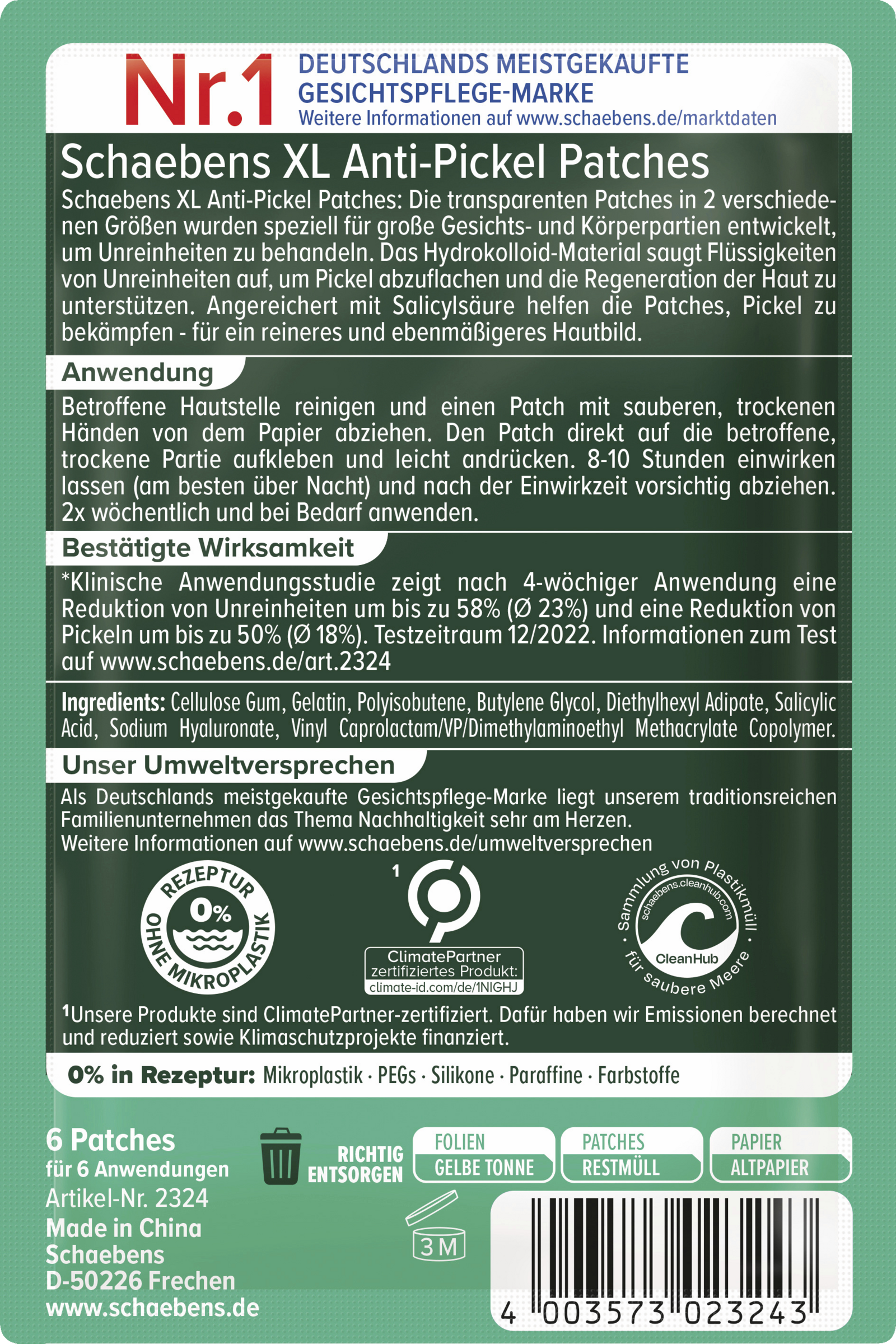 Schaebens XL Anti-Pickel Patches: Die transparenten Patches in 2 verschiedenen Größen wurden speziell für große Gesichts- und Körperpartien entwickelt, um Unreinheiten zu behandeln. Das Hydrokolloid-Material saugt Flüssigkeiten von Unreinheiten auf, um Pickel abzuflachen und die Regeneration der Haut zu unterstützen. Angereichert mit Salicylsäure helfen die Patches, Pickel zu bekämpfen - für ein reineres und ebenmäßigeres Hautbild.