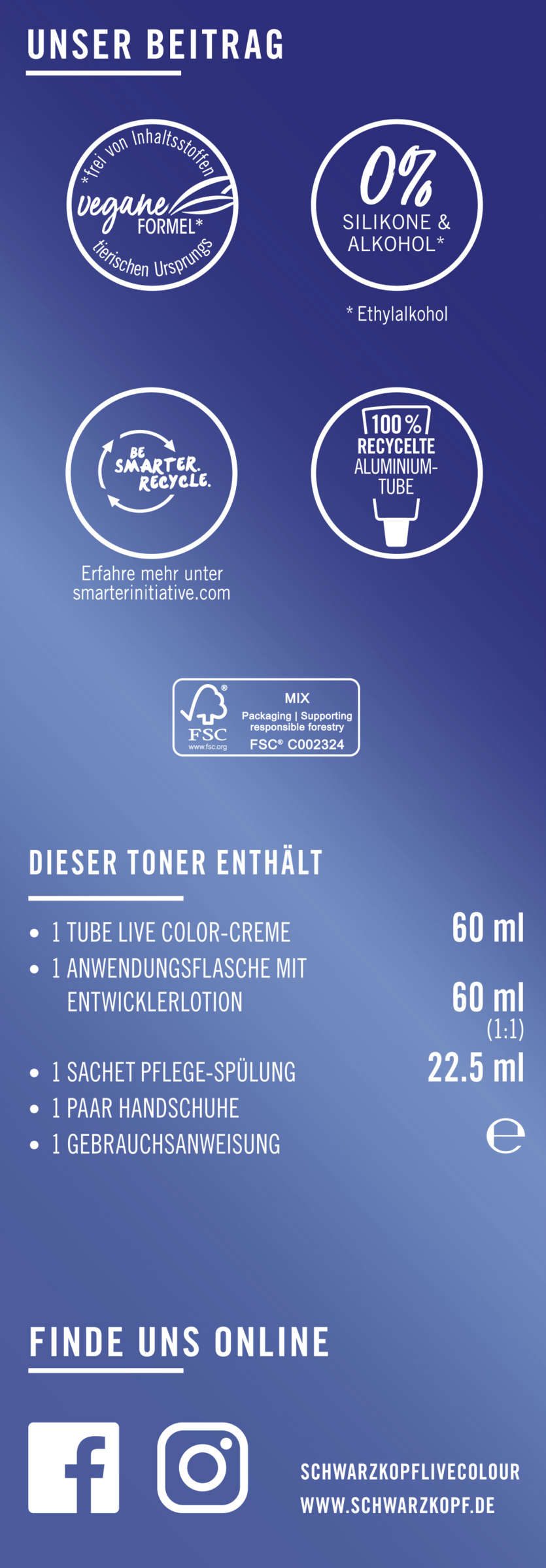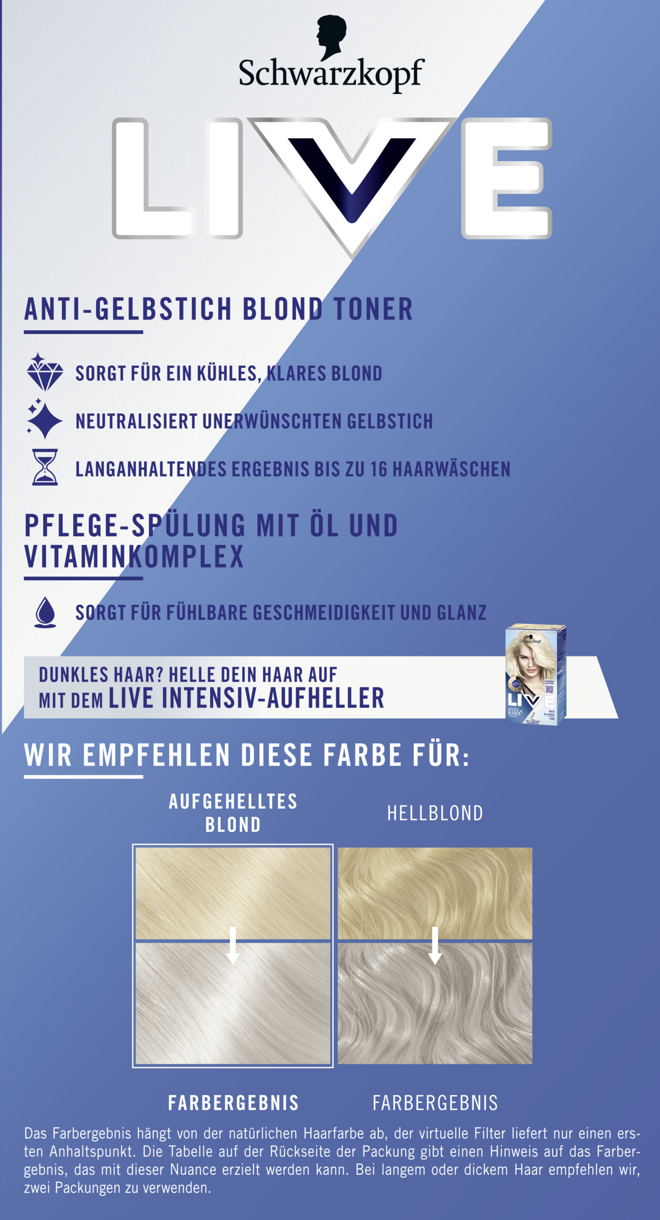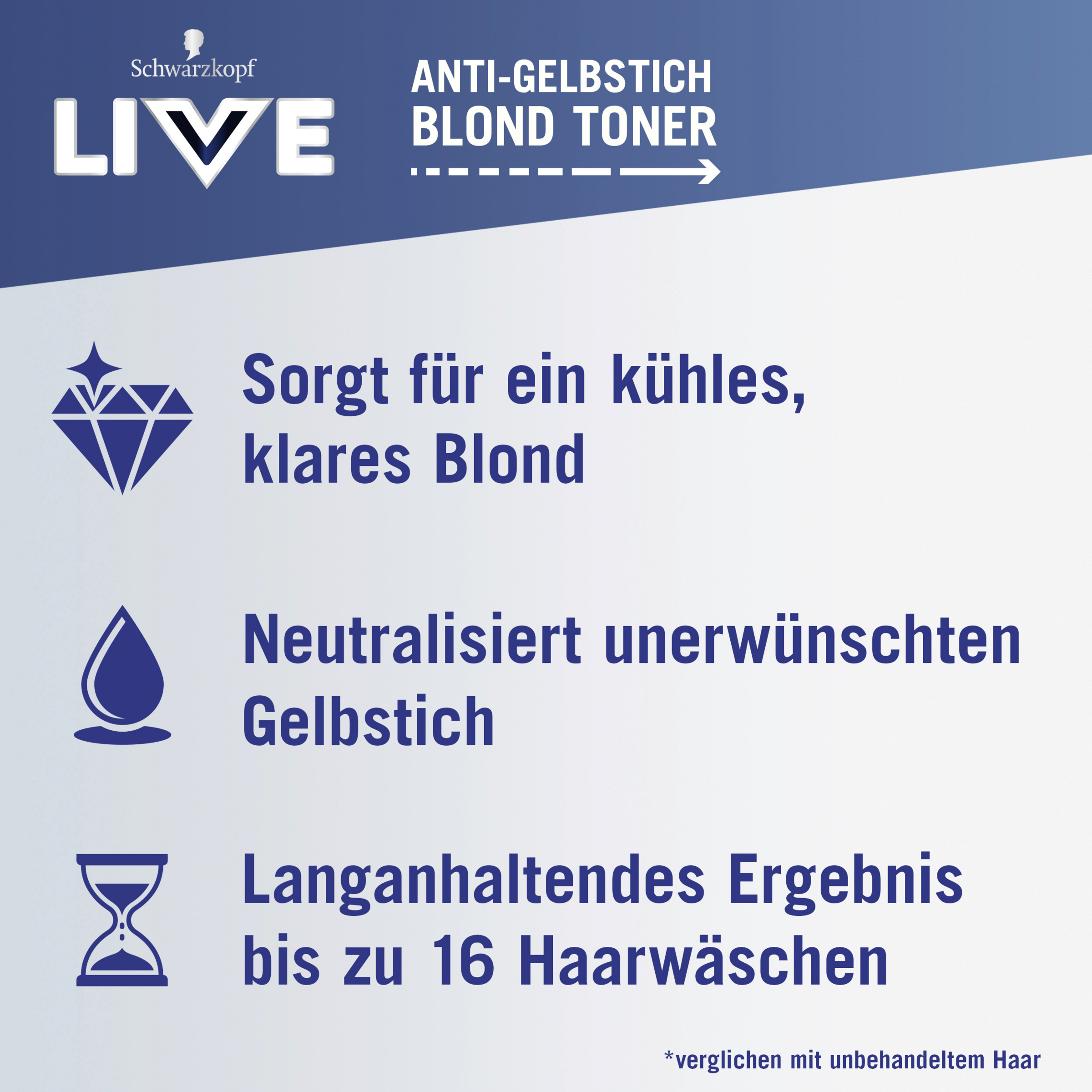 Schwarzkopf Live Toner – Semi-permanenter Blond Toner für ein kühles, klares Blond bis zu 16 Haarwäschen!