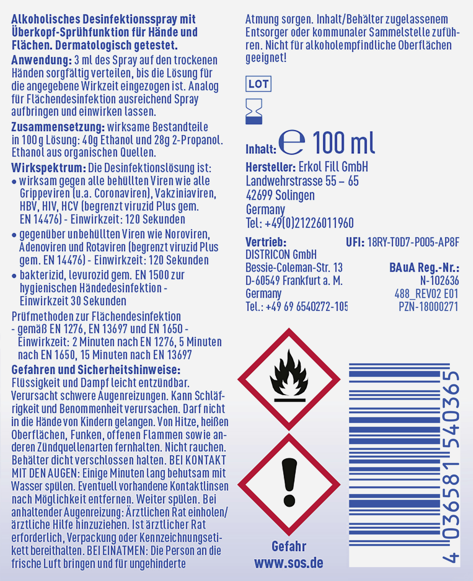Wirksame Bestandteile in 100g Lösung: 40g Ethanol, 28g 2- Propanol.