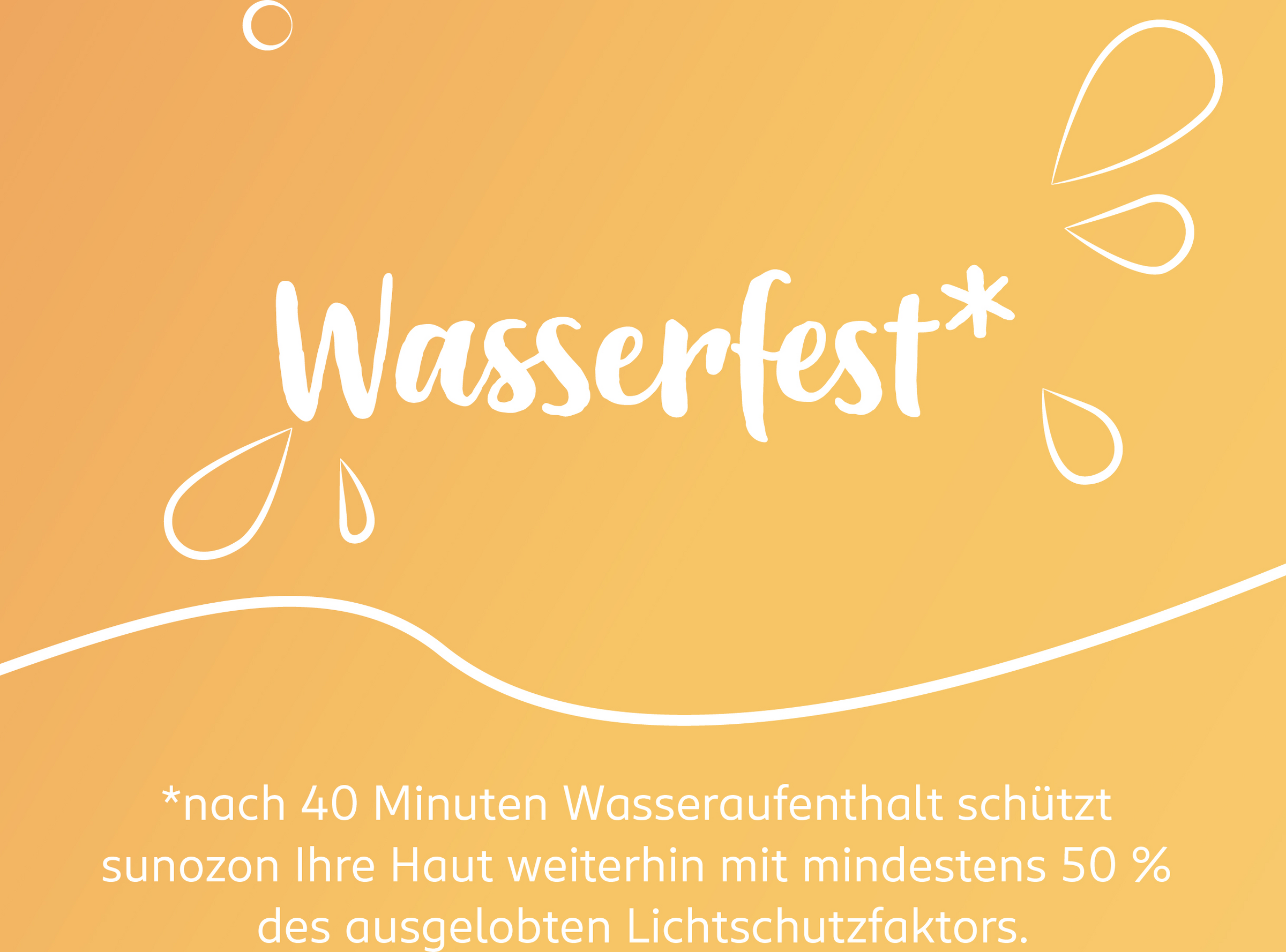 *Nach 40 Minuten Wasseraufenthalt schützt sunozon Ihre Haut weiterhin mit mindestens 50 % des ausgelobten Lichtschutzfaktors.