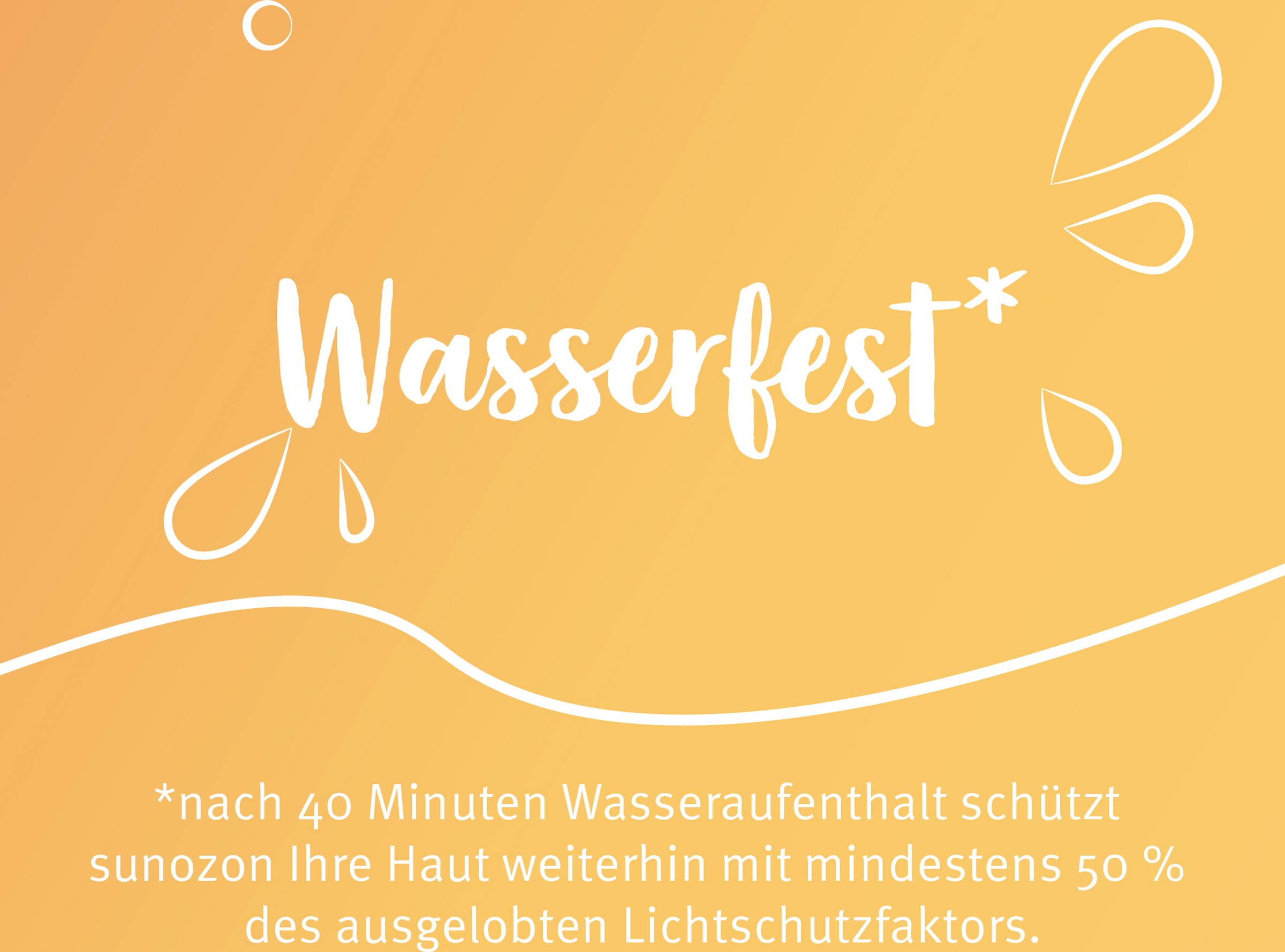 *Nach 40 Minuten Wasseraufenthalt schützt sunozon Ihre Haut weiterhin mit mindestens 50% des ausgelobten Lichtschutzfaktors.