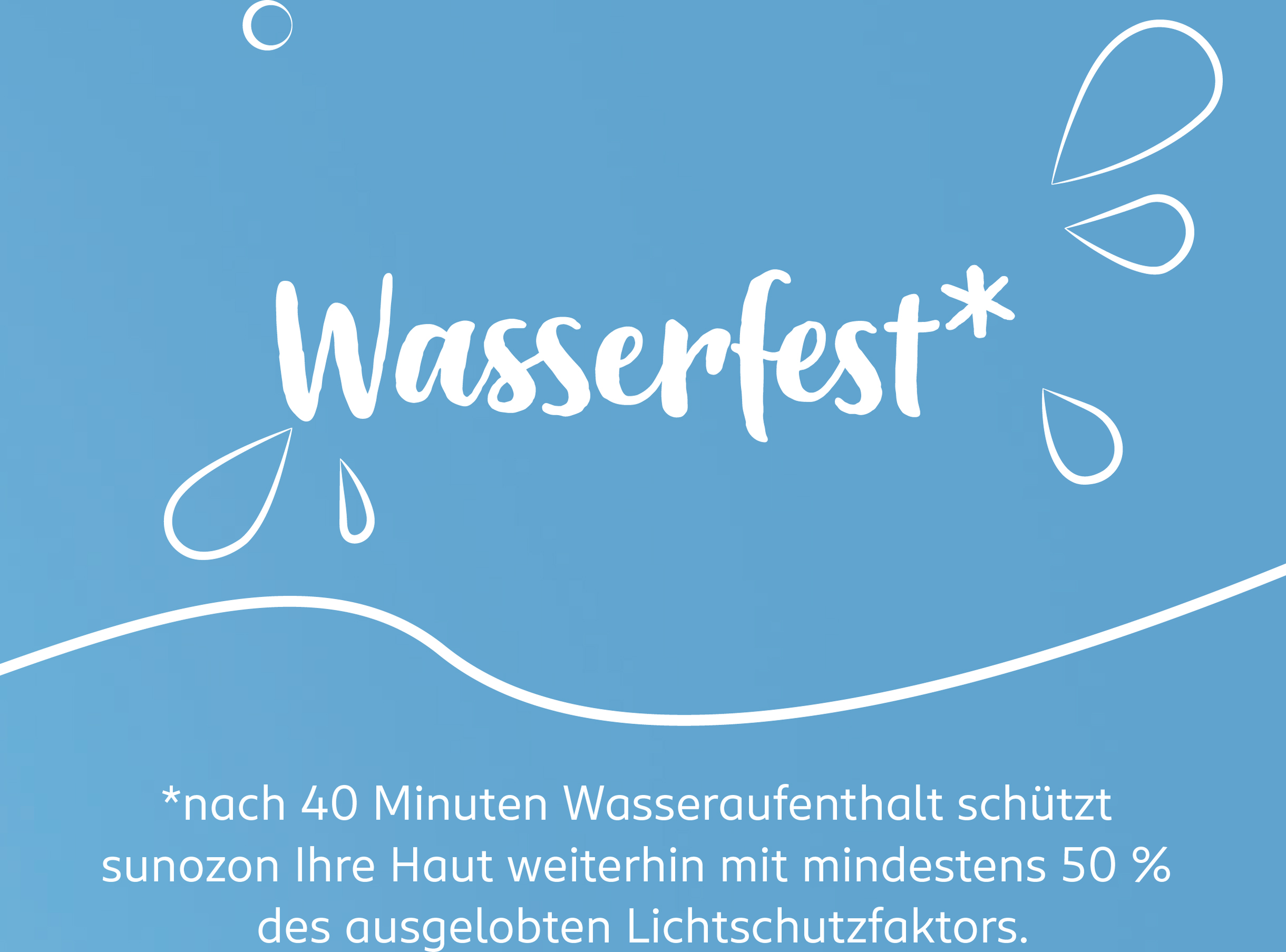*nach 40 Minuten Wasseraufenthalt schützt Sunozon Ihre Haut weiterhin mit mindestens 50% des ausgelobten Lichtschutzfaktors