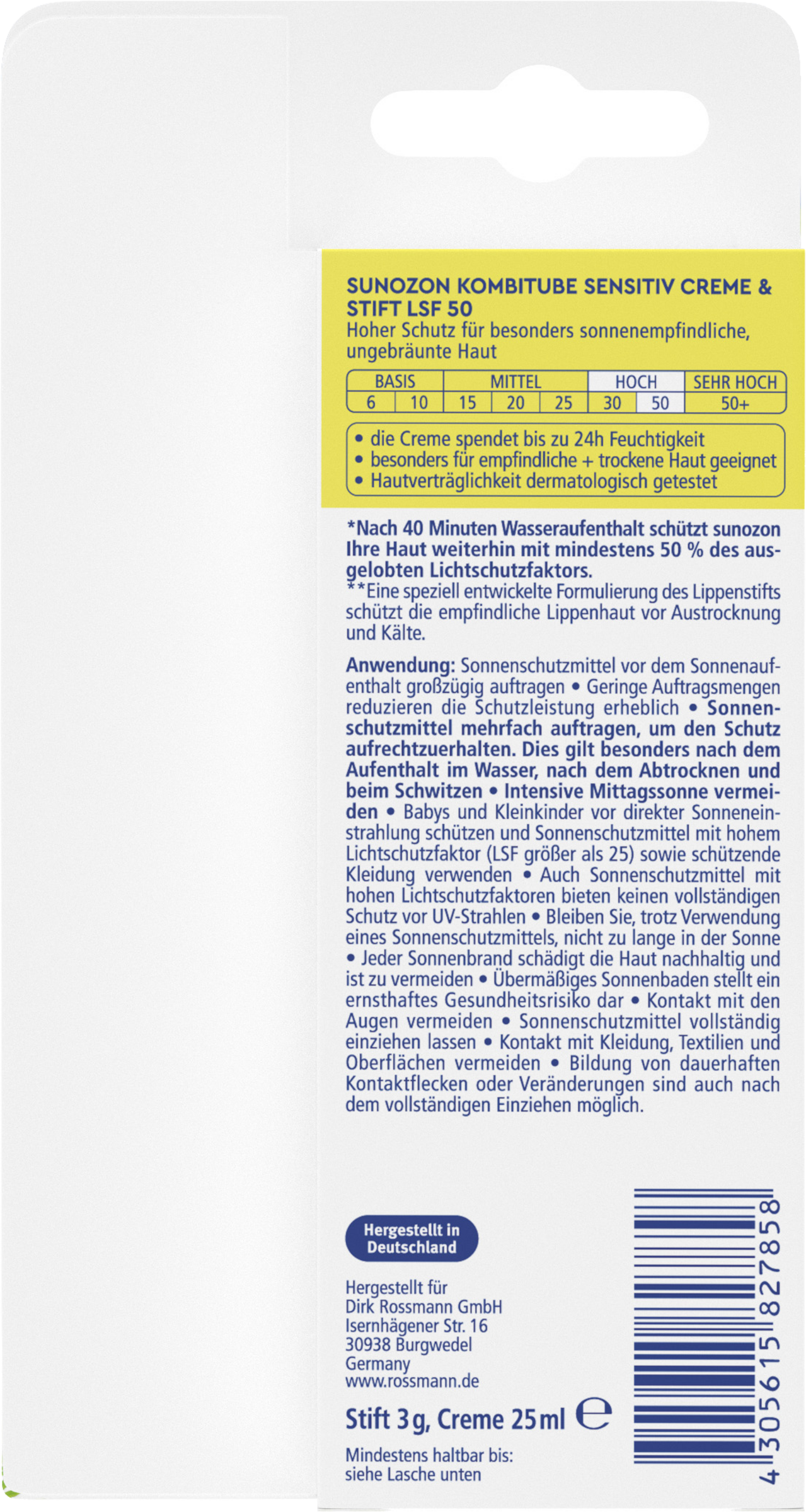 *Nach 40 Minuten Wasseraufenthalt schützt sunozon Ihre Haut weiterhin mit mindestens 50 % des ausgelobten Lichtschutzfaktors.