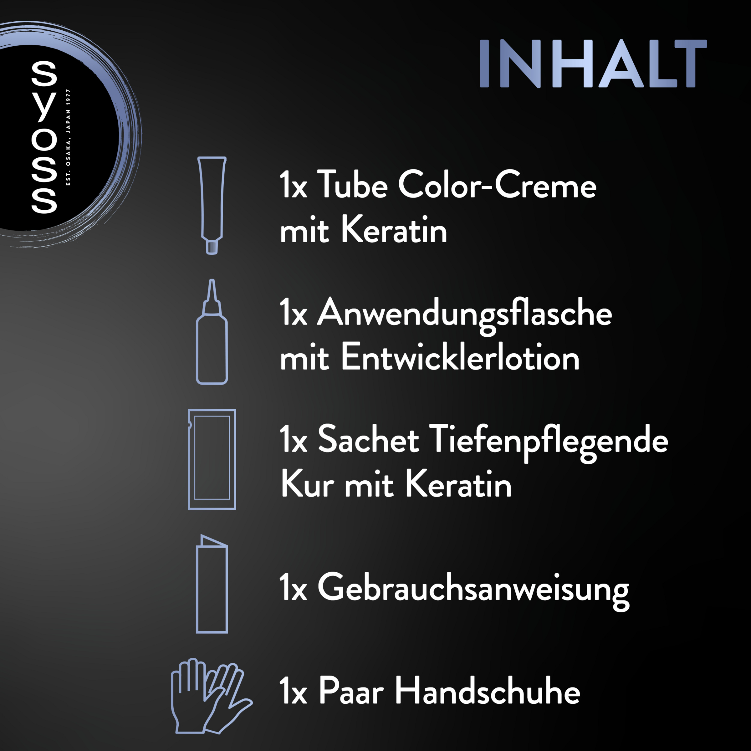 ACHTUNG, BITTE VOR DER ANWENDUNG BEACHTEN, bitte lies die Sicherheitshinweise auf der Rückseite der Gebrauchsanweisung sorgfältig durch. Lege vor Beginn der Anwendung ein Handtuch und eine Uhr in die Nähe, um die Einwirkzeit zu überwachen. SYOSS COLOR dürfen nur auf trockenem, nicht vorgewaschenem Haar angewendet werden.