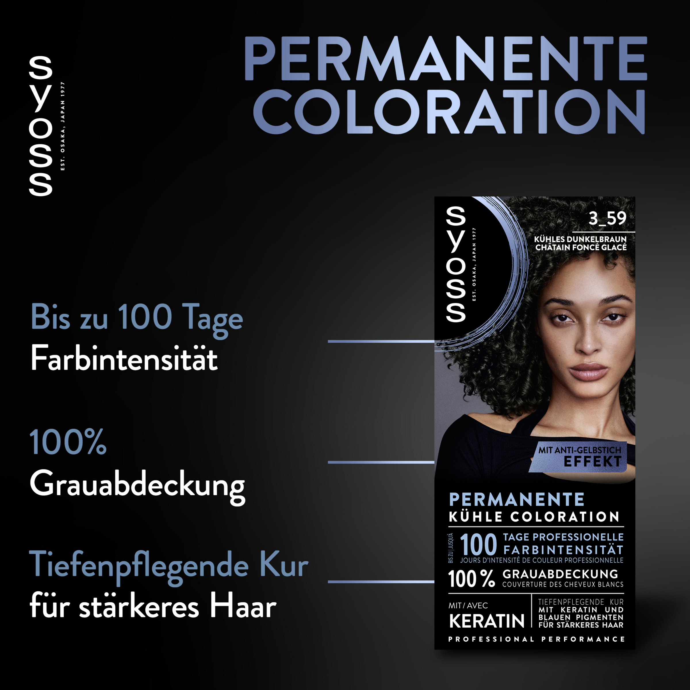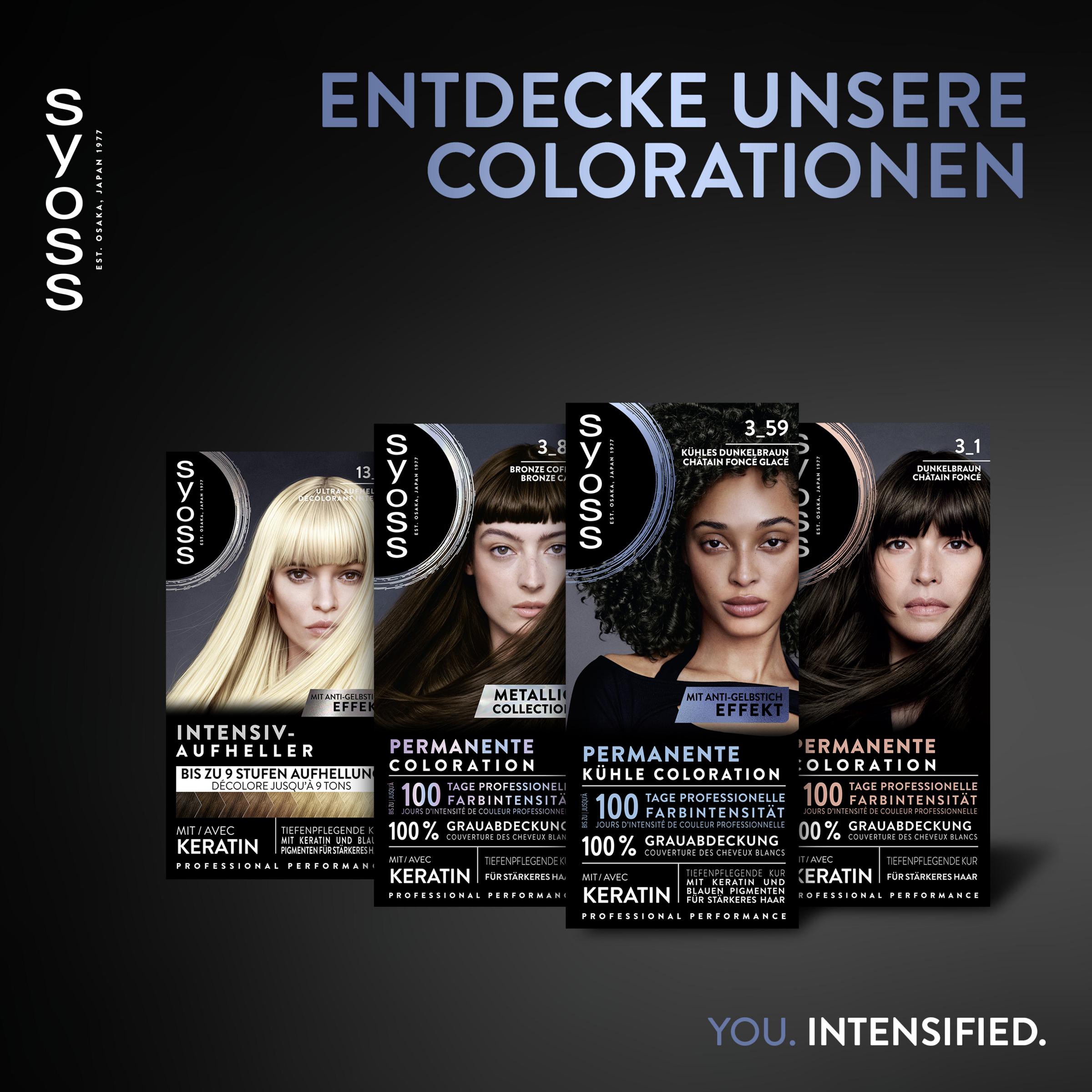 SYOSS permanente Coloration für kühle Farbtöne – 100 Tage professionelle Farbintensität mit Anti-Gelbstich-Effekt