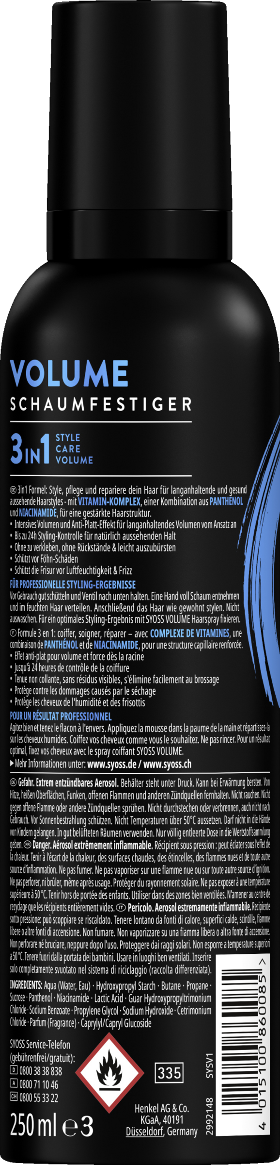 - mit Vitamin-Komplex – Der SYOSS Schaumfestiger sorgt mit Vitamin-Komplex, einer Kombination aus Panthenol und Niacinamide, für eine gestärkte Haarstruktur