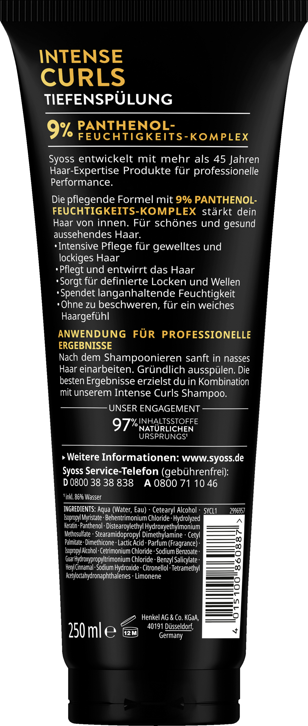 - reichhaltige Pflege – Die SYOSS Spülung ist reichhaltiger als eine Spülung und leichter als eine Kur – für gesund aussehendes gewelltes und lockiges Haar