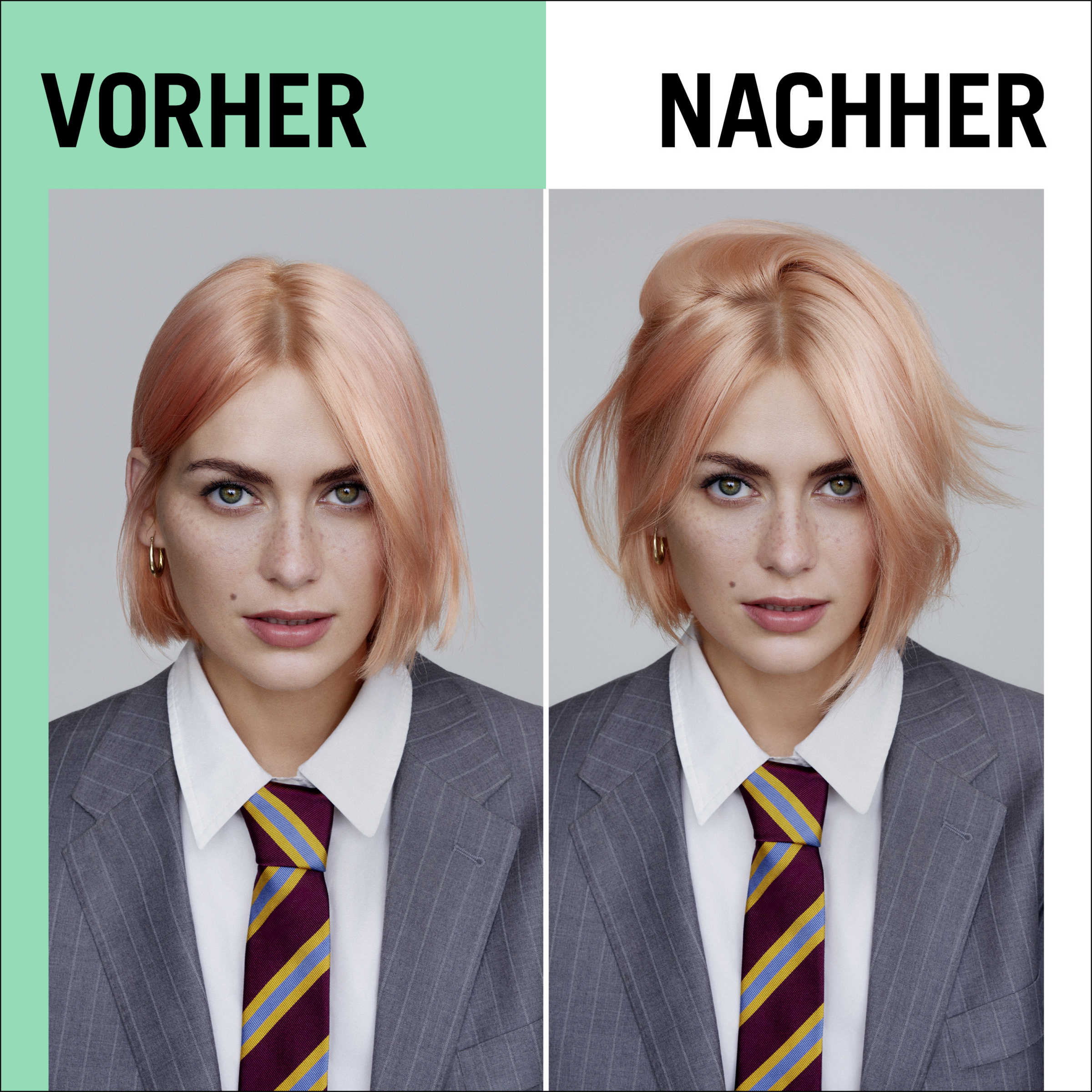 Gut schütteln und Ventil nach unten richten. Schaum entnehmen und im feuchten Haar verteilen. Nicht ausspülen! Föhnhitze verstärkt den Volumen-Effekt.