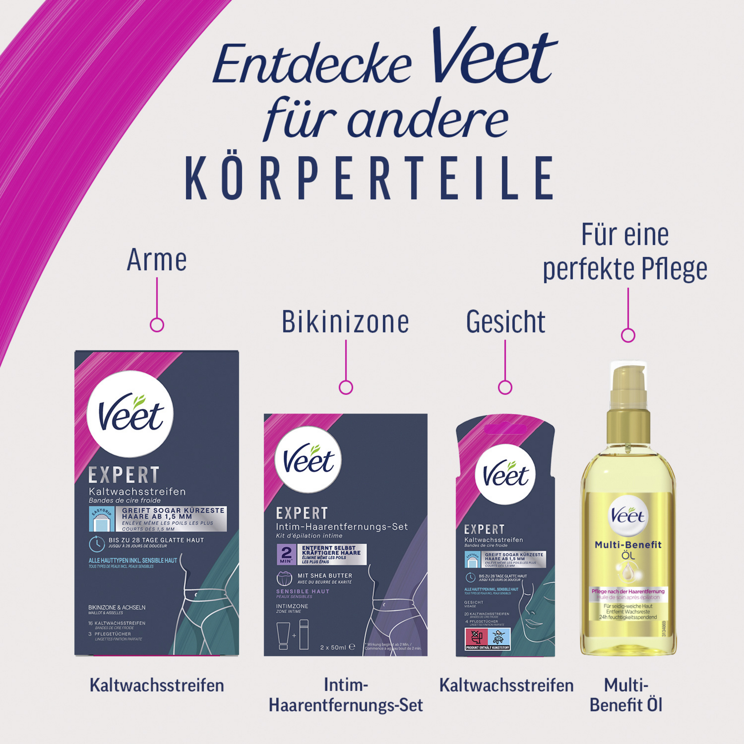 Du hast genug von lästigen Stoppeln, eingewachsenen Haaren und gereizter Haut in der Bikinizone? Mit dem Veet Expert Intim-Haarentfernungs-Set kannst du störende Körperbehaarung jetzt in der gesamten äußeren Intimzone sorgenfrei und schnell entfernen.