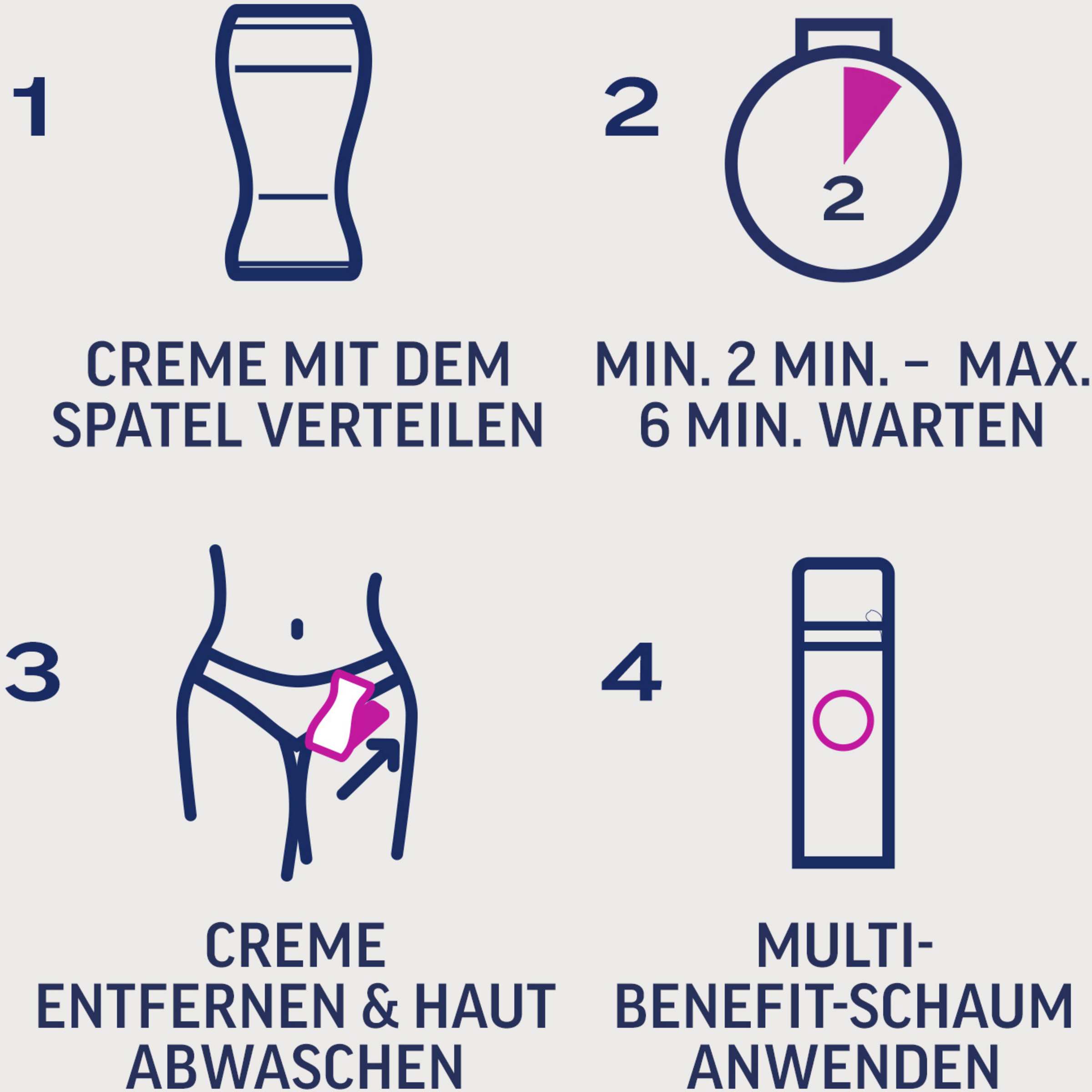 - schnelles und effektive Haarentfernung: Die Creme entfernt selbst kräftigere Haare und wirkt bereits ab 2 Minuten