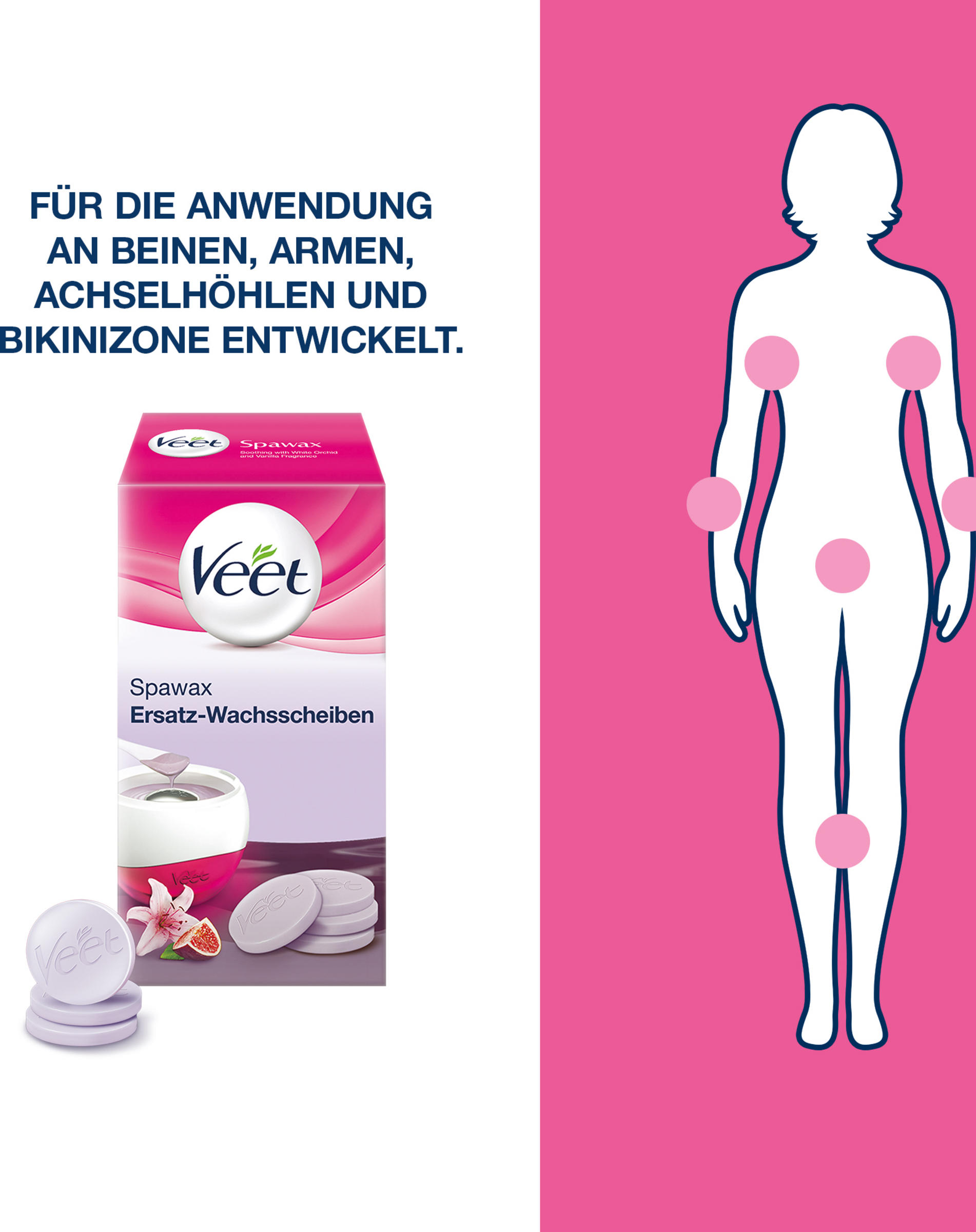 - Lieferumfang: 6 x Veet Wachsscheiben zur Anwendung ohne Vliesstreifen. Nachfüll-Packung für das Veet Spawax Warmwachsgerät. Set aus 6 duftenden Haarentfernungswachs-Scheiben für Damen.