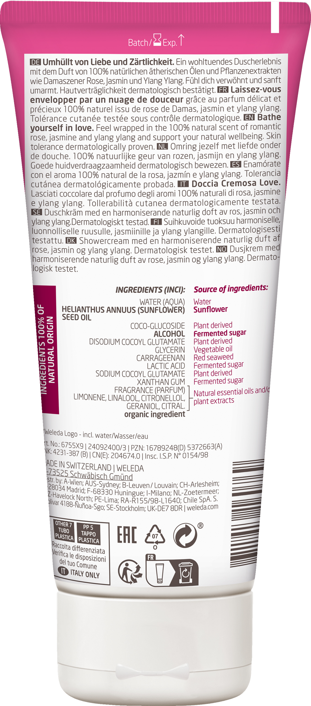 Water (Aqua), Helianthus Annuus (Sunflower) Seed Oil*, Alcohol denat., Coco-Glucoside, Disodium Cocoyl Glutamate, Glycerin, Sodium Cocoyl Glutamate, Carrageenan, Citric Acid, Xanthan Gum, Fragrance (Parfum), BetaCaryophyllene, Cananga Odorata Oil/Extract, Cedrus Atlantica Oil/Extract, Citral, Citronellol, Citrus Aurantium Bergamia Peel Oil, Eugenia Caryophyllus Oil, Eugenol, Geraniol, Geranyl Acetate, Lavandula Oil/Extract, Limonene, Linalool, Linalyl Acetate, Pelargonium Graveolens Flower Oil, Pinene, Rose Flower Oil/Extract. [8007770003]