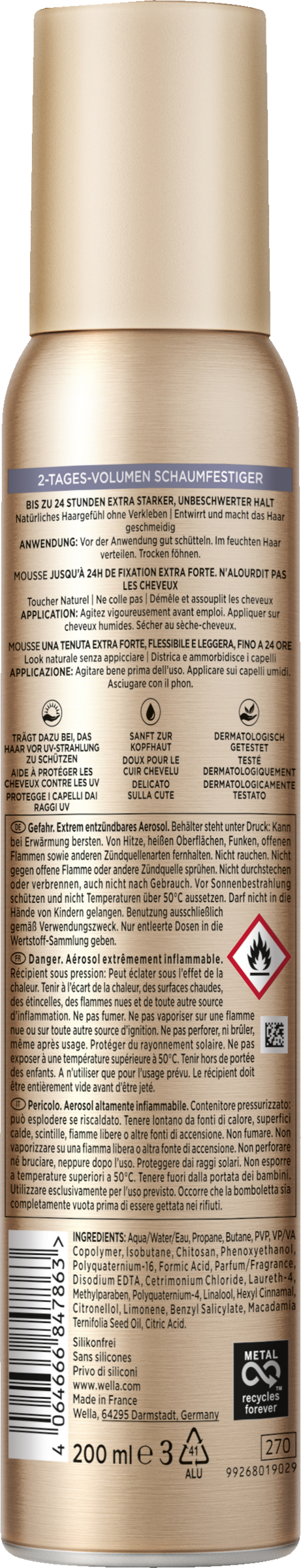- volumen Schaumfestiger für voller aussehendes Haar und ein angenehmes Haargefühl, ohne klebrige Rückstände zu hinterlassen