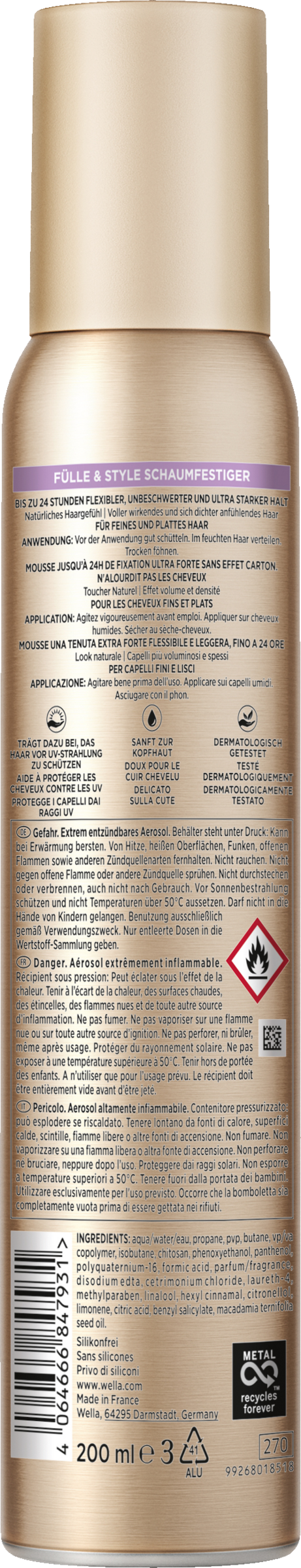 Verliebe Dich in schwereloses und voluminöses Haar, ohne klebrige Rückstände dank dem Wellaflex Fülle & Style Schaumfestiger für feines und plattes Haar. Dieser kopfhautschonende, dermatologisch getestete Stylingschaum sorgt für einen ultra starken Halt, der bis zu 24 Stunden hält und Dir zu voller und dichter wirkendem Haar verhilft. Der Stylingschaum ist silikonfrei, bietet UV-Schutz vor Sonneneinstrahlung und beinhaltet 45 % recyceltes Material in der Verpackung.