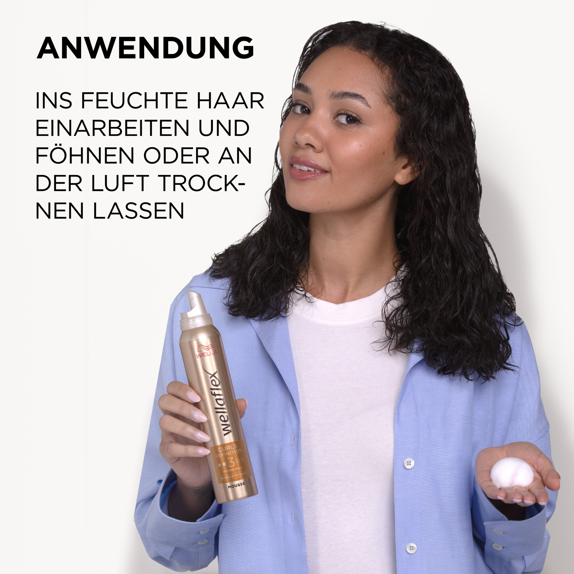 - Lockenmousse, für schwungvolle und definierte Locken mit einem natürlichen, nicht klebrigen Haargefühl