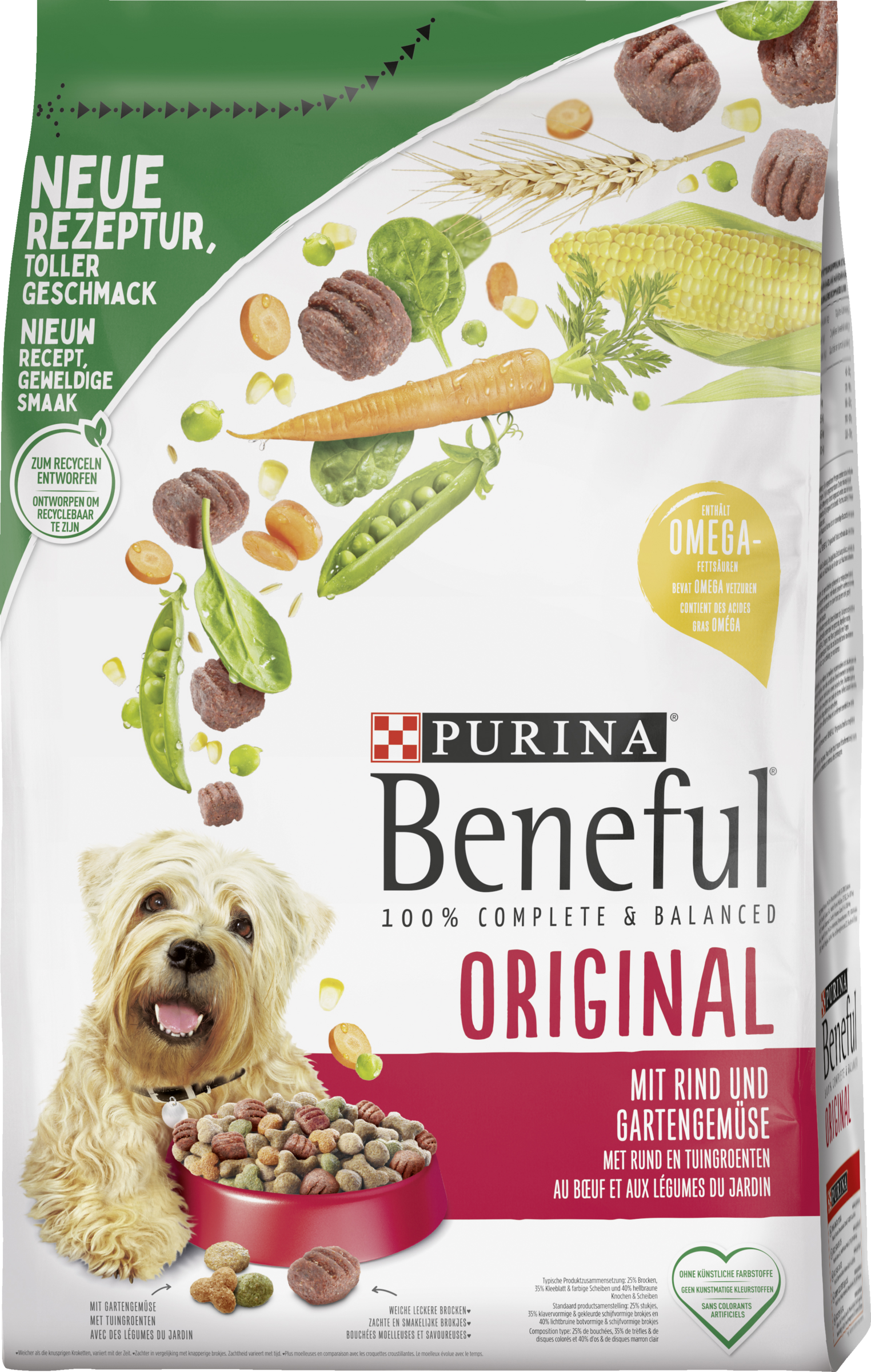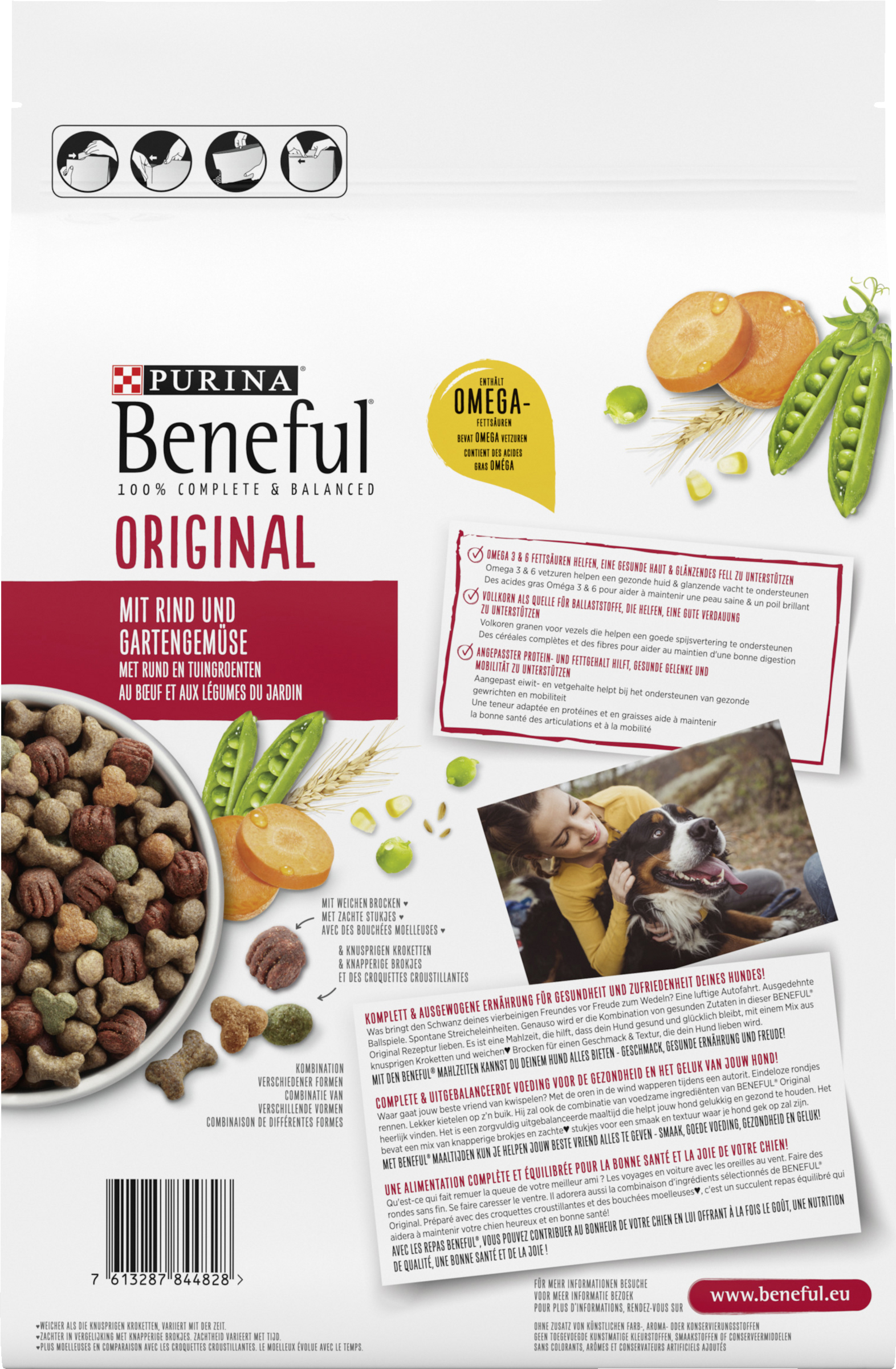 Was bringt den Schwanz deines vierbeinigen Freundes vor Freude zum Wedeln? Eine luftige Autofahrt. Ausgedehnte Ballspiele. Spontane Streicheleinheiten. Genauso wird er die Kombination von gesunden Zutaten in dieser BENEFUL® Original Rezeptur lieben. Es ist eine Mahlzeit, die hilft, dass dein Hund gesund und glücklich bleibt, mit einem Mix aus knusprigen Kroketten und weichen Brocken für einen Geschmack & Textur, die dein Hund lieben wird. Mit den BENEFUL® Mahlzeiten kannst Du Deinem Hund alles bieten - Geschmack, gesunde Ernährung und Freude! Weicher als die knusprigen Kroketten, variiert mit der Zeit., Mit den BENEFUL® Mahlzeiten kannst Du Deinem Hund alles bieten - Geschmack, gesunde Ernährung und Freude!