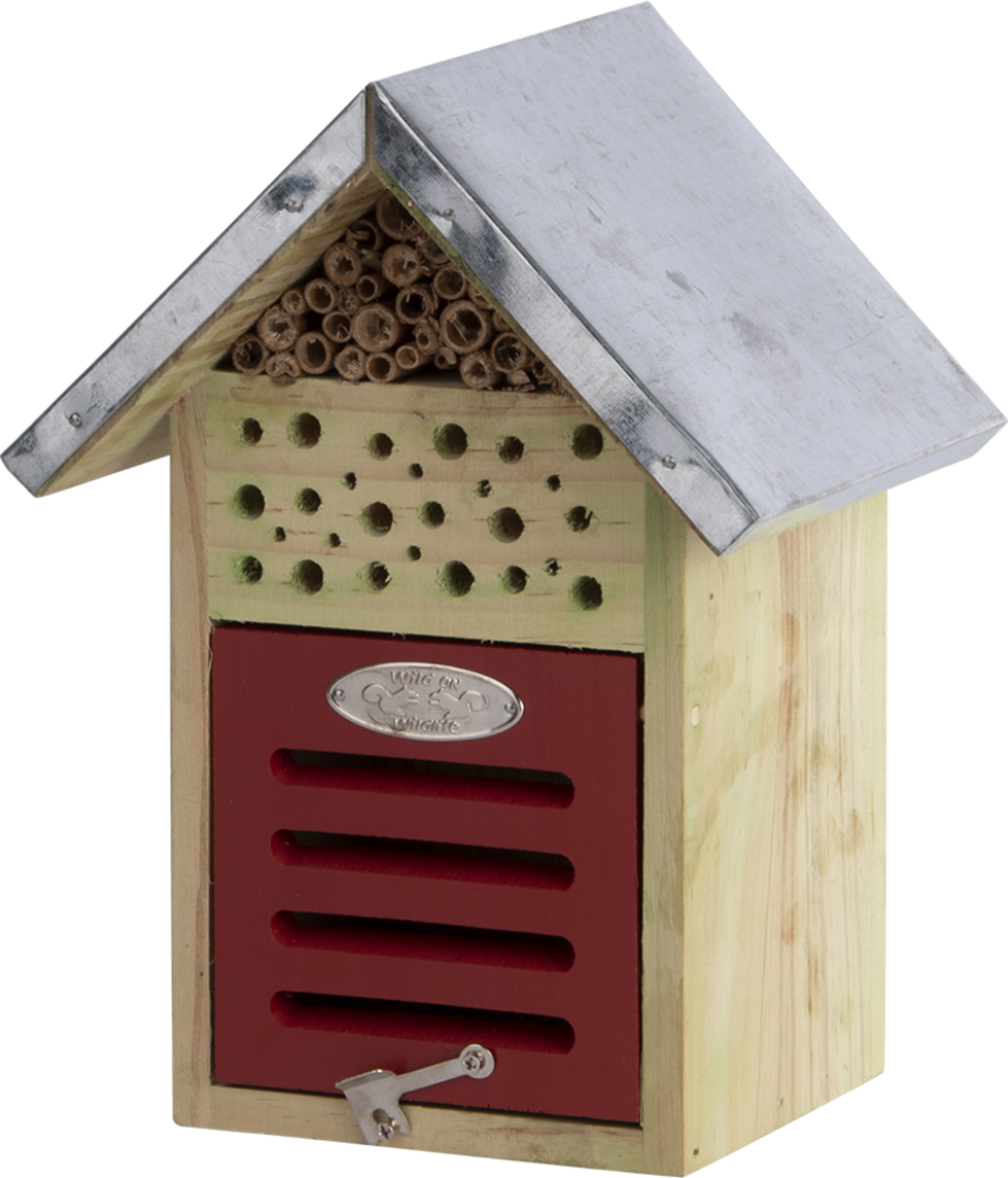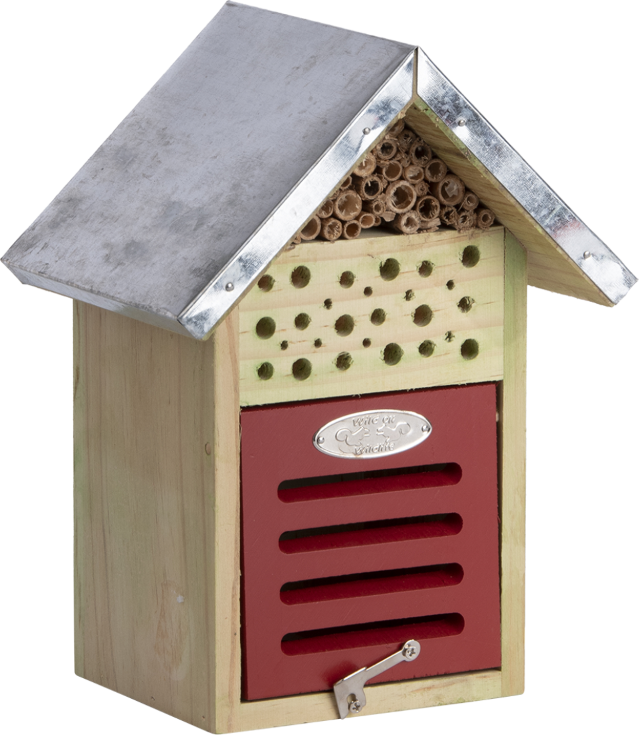 Zu den Gästen dieses Insektenhotels zählen Solitärbienen, Florfliegen, Marienkäfer und Ohrwürmer. Die natürlichen Schädlingsbekämpfer , die gleichzeitig die Pflanzen in Ihrem Garten bestäuben. nutzen es als Nist- aber auch Überwinterungsmöglichkeit.